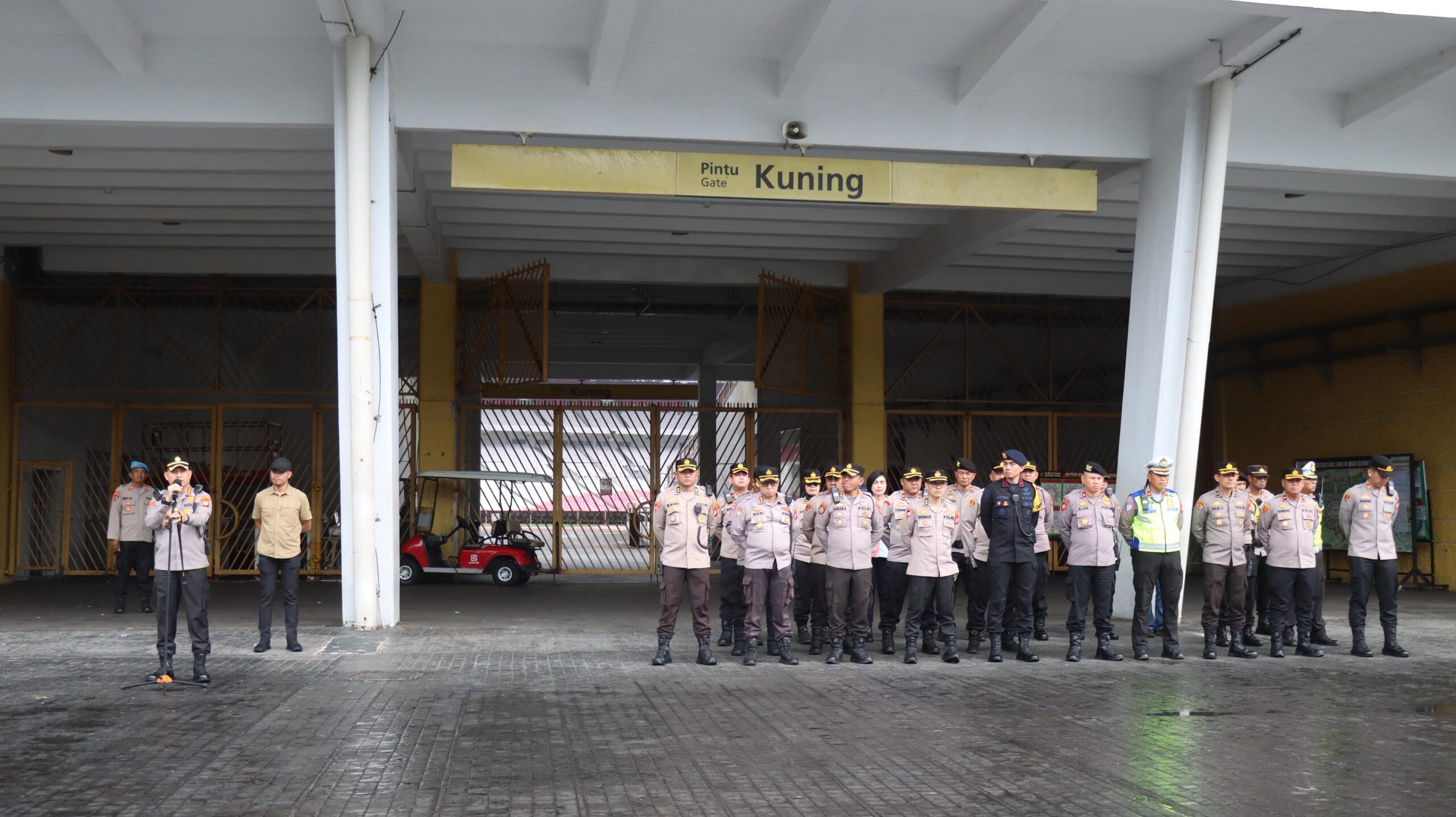 Sebagai bagian dari kesiapan pelayanan, aparat gabungan menggelar Tactical Wall Game (TWG) dan Apel Pelayanan dipimpin langsung oleh Kapolres Metro Jakarta Pusat pada pukul 13.00 WIB di Pintu Kuning SUGBK.