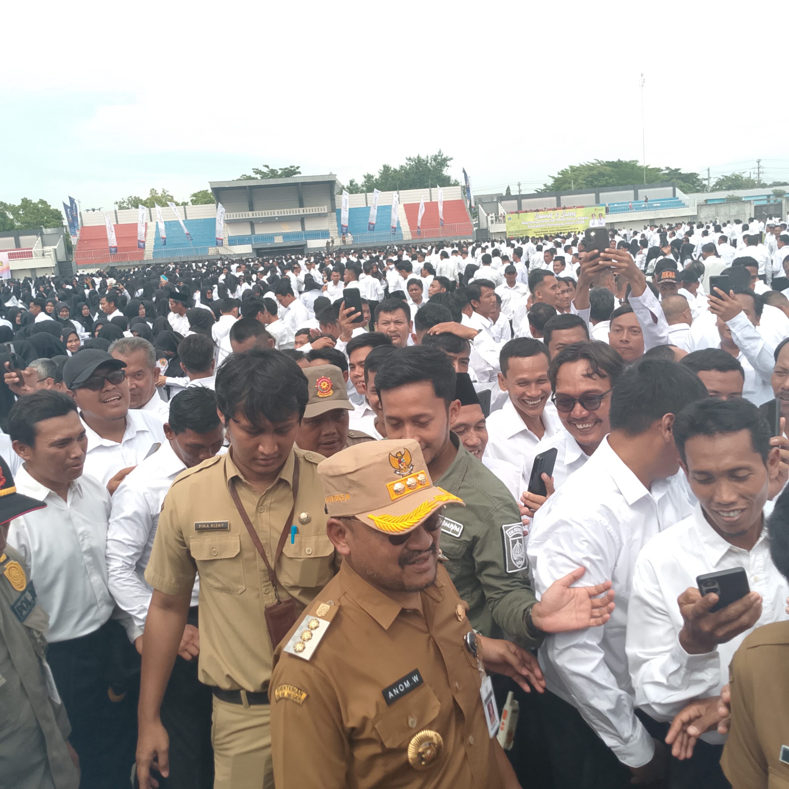 Bupati Anom Widiyantoro Saat Menghadiri Pelantikan PPPK Paruh Waktu Di Stadion Mochtar Pemalang. (Foto: Teguh/kabarketro.co)