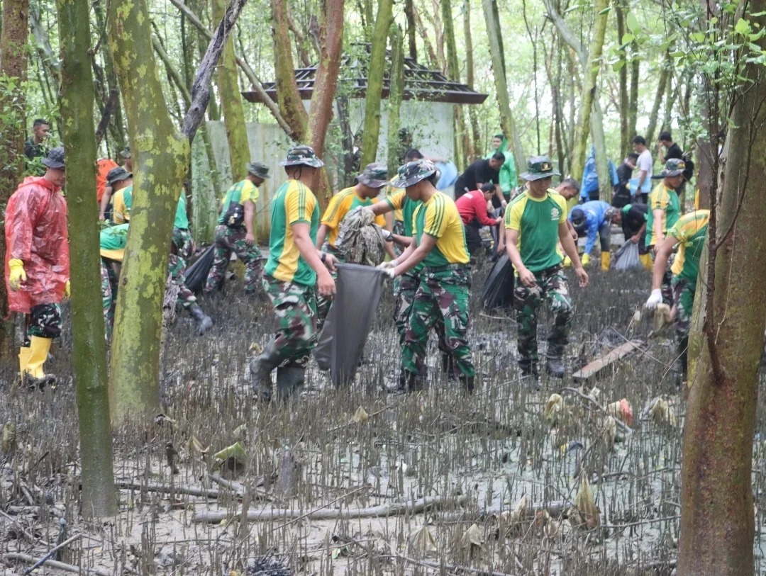 Puluhan prajurit bersama unsur Forkopimda Karawang dan masyarakat setempat bergotong royong membersihkan sampah plastik, limbah rumah tangga, hingga berbagai jenis sampah lainnya di sepanjang garis pantai. Aksi ini menjadi langkah konkret dalam menjaga kebersihan serta kelestarian ekosistem laut dari ancaman pencemaran lingkungan.