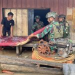 Aksi Cepat Tanggap Prajurit Satgas Pamtas Yonarmed 11 Kostrad Bantu Padamkan Kebakaran Rumah Milik Warga