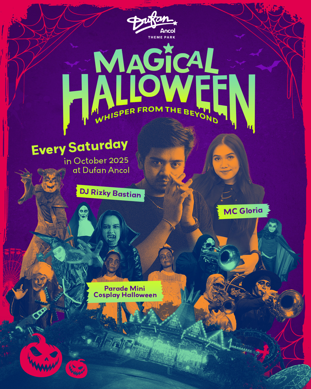 Suasana seram nan seru hadir kembali di Dunia Fantasi (Dufan) lewat Magical Halloween 3 bertema “Do You Dare?”. Acara tahunan yang selalu ditunggu sejak 2023 ini menghadirkan beragam atraksi menarik, seperti School of Zombie Show di Indoor Stage, Parade Mini Cosplay Halloween, hingga DJ Performance setiap akhir pekan mulai pukul 18.30 WIB di area Turangga-Rangga.