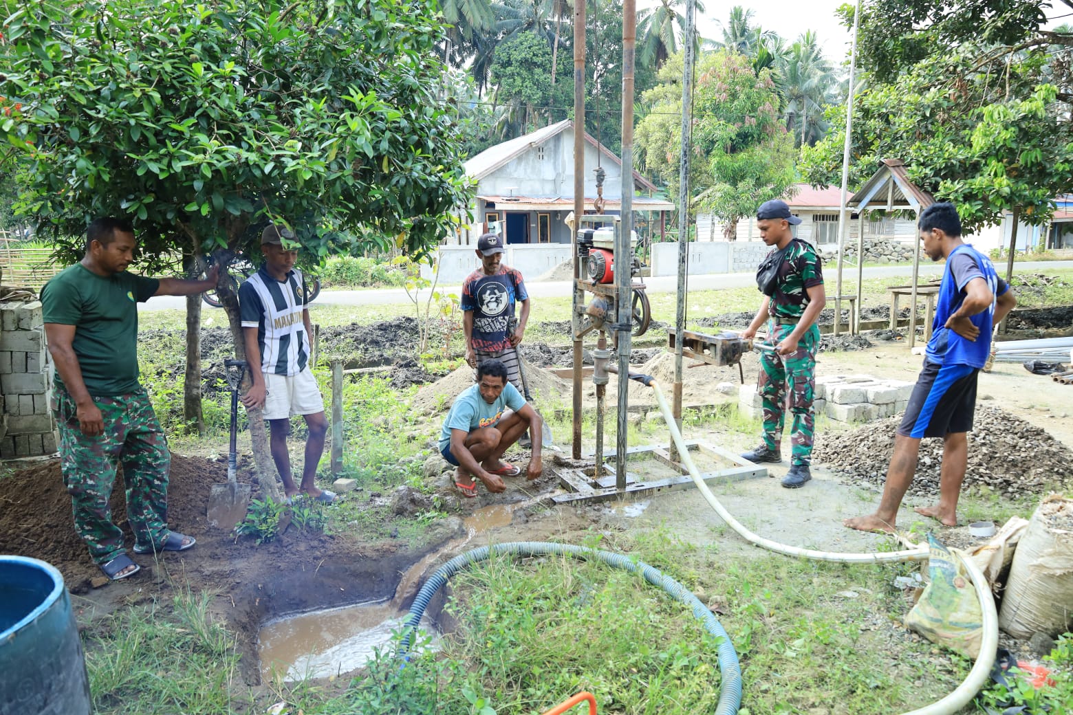 Kegiatan ini dipantau langsung oleh Dan SSK TMMD ke-126 Kapten Inf Fardi Ruslan didampingi Danramil 1505-04/Oba Lettu Inf Ibrahim Tuhulele. Kapten Inf Fardi Ruslan menjelaskan bahwa pembangunan sumur bor ini merupakan salah satu sasaran tambahan dalam program unggulan Kepala Staf Angkatan Darat (Kasad), yaitu TNI Manunggal Air, yang bertujuan untuk membantu masyarakat mendapatkan akses air bersih secara berkelanjutan. “Pembangunan sumur bor ini bukan hanya sebagai bentuk dukungan terhadap program TMMD, tetapi juga sebagai wujud kepedulian TNI terhadap kebutuhan dasar masyarakat, khususnya air bersih yang sangat vital dalam kehidupan sehari-hari,” ungkap Kapten Fardi.
