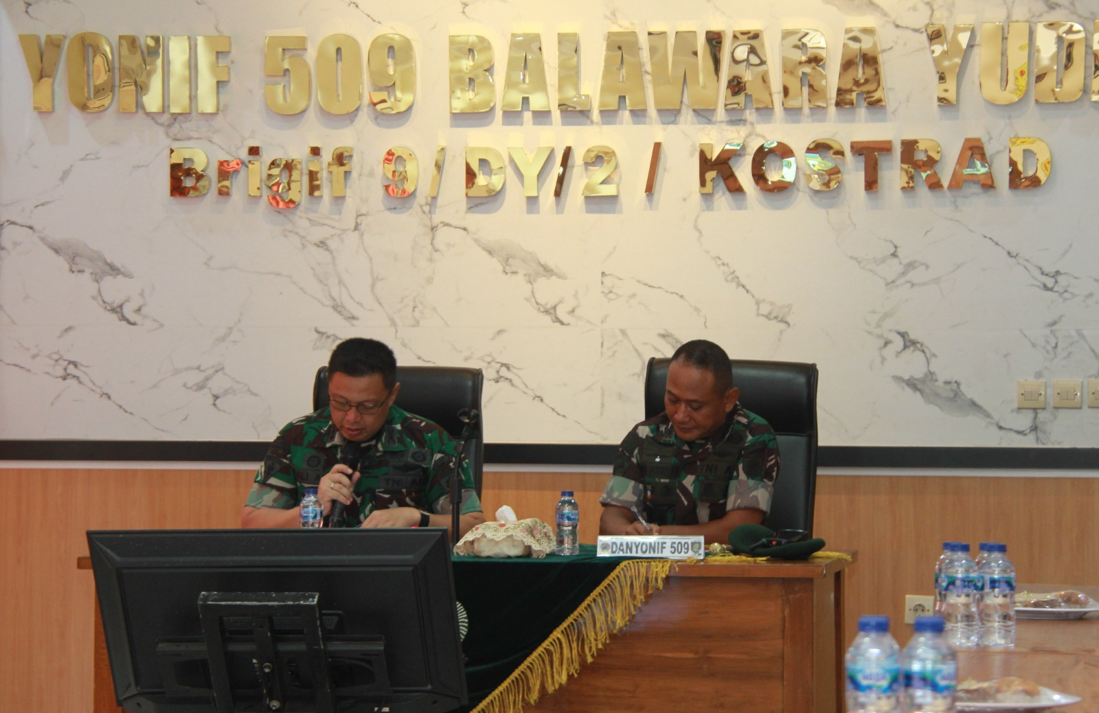 Dalam sambutannya, Komandan Yonif 509/BY, Letkol Inf Juni Fitriyan, S.H., menyampaikan apresiasi atas pelaksanaan audit yang menjadi bagian dari pembinaan dan pengawasan internal guna meningkatkan profesionalitas dan akuntabilitas satuan. “Audit ini merupakan kegiatan independen dan objektif yang memberikan nilai tambah bagi peningkatan kinerja organisasi melalui pengamatan, pemeriksaan, penilaian, dan pembinaan secara komprehensif,” ungkapnya.
