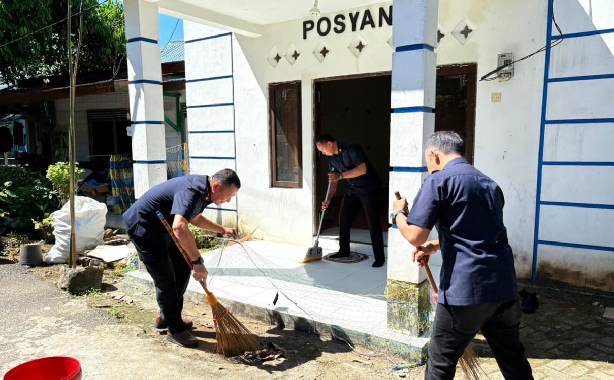 Semangat Hari Bakti Pemasyarakatan (HBP) Ke-62 Tahun 2026 diwujudkan Lapas Narkotika Kelas IIA Karang Intan melalui aksi nyata bakti sosial berupa bersih-bersih fasilitas umum dan fasilitas sosial di Desa Lihung, Kecamatan Karang Intan, Sabtu (04/04/2026).