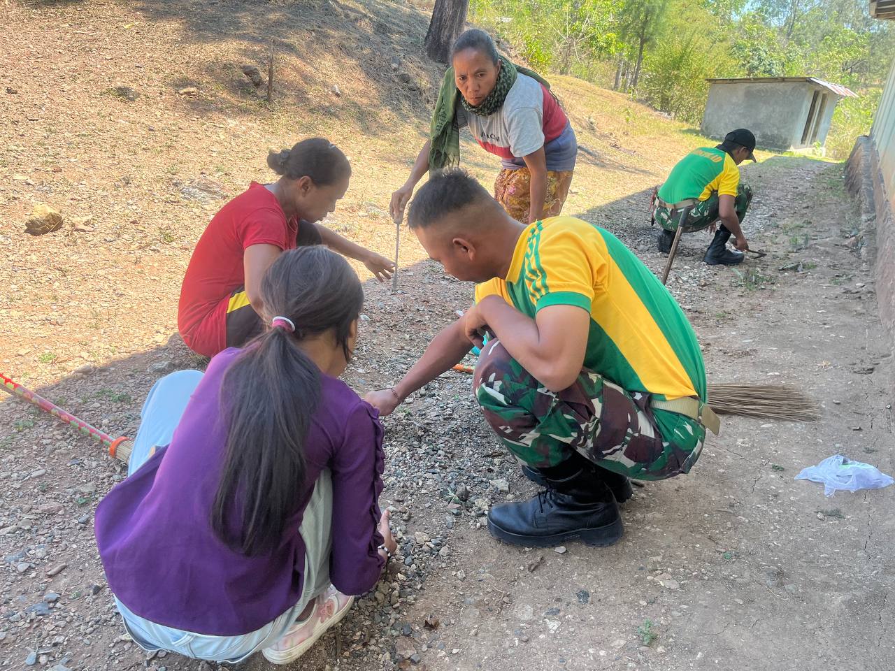 Tak hanya sekedar menjaga perbatasan, pengabdian terus dilakukan di segala bidang. Karya Bakti ini adalah cermin budaya gotong royong antara TNI dan Rakyat.