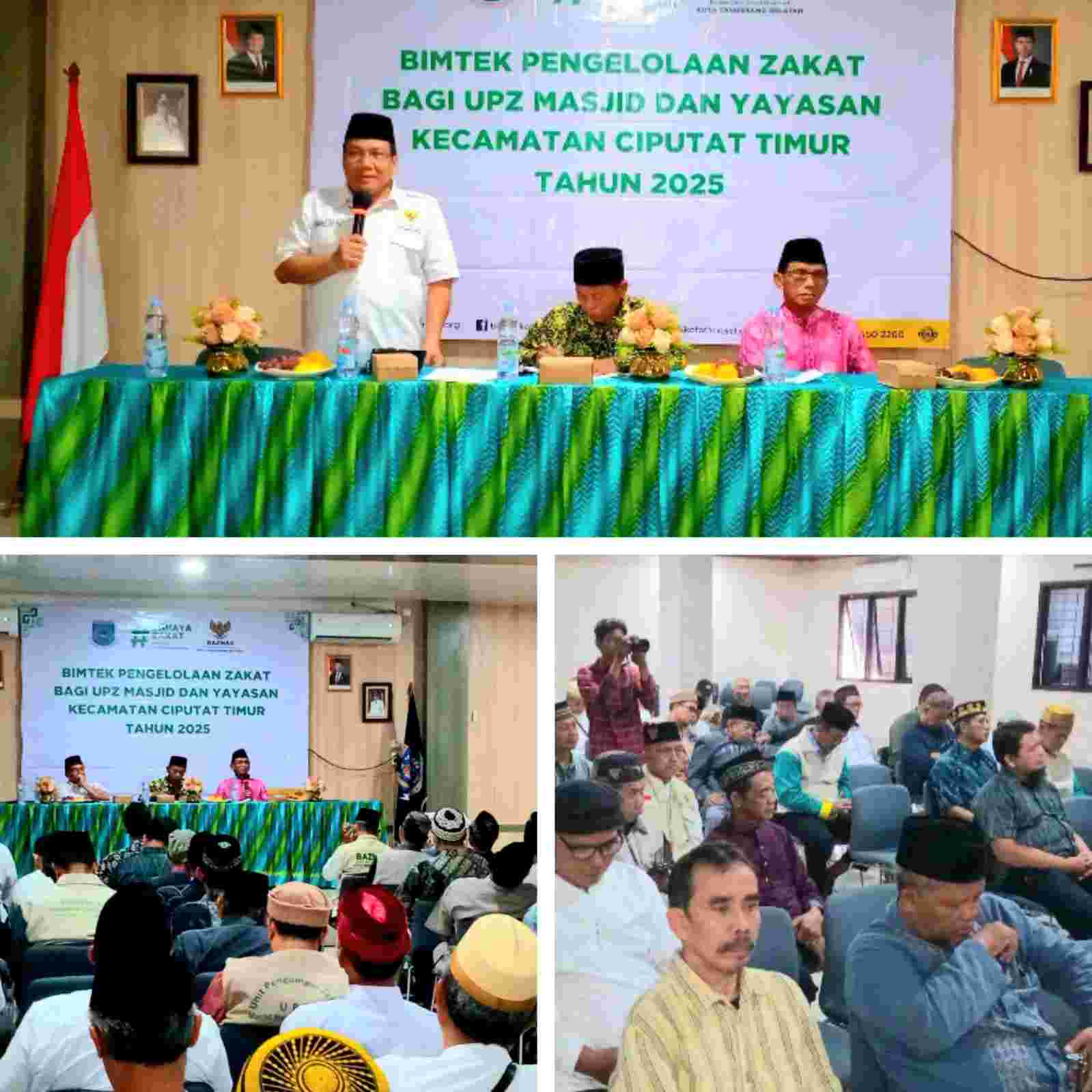 Badan Amil Zakat Nasional (Baznas) Kota Tangerang Selatan menggelar Bimbingan Teknis (Bimtek) Pengelolaan Zakat bagi Unit Pengumpul Zakat (UPZ) masjid dan yayasan di wilayah Kecamatan Ciputat Timur Tahun 2025. Kegiatan berlangsung di Aula Kecamatan Ciputat Timur pada Rabu (19/11).