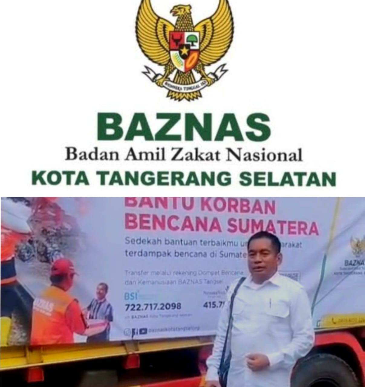 Badan Amil Zakat Nasional (BAZNAS) Kota Tangerang Selatan memberangkatkan bantuan kemanusiaan untuk masyarakat terdampak bencana di wilayah Sumatera dan Aceh, Pada jum’at 26 Desember 2025.Bantuan yang dikirim meliputi paket sembako, pakaian baru, perlengkapan ibadah seperti mukena dan sarung, serta obat-obatan.
