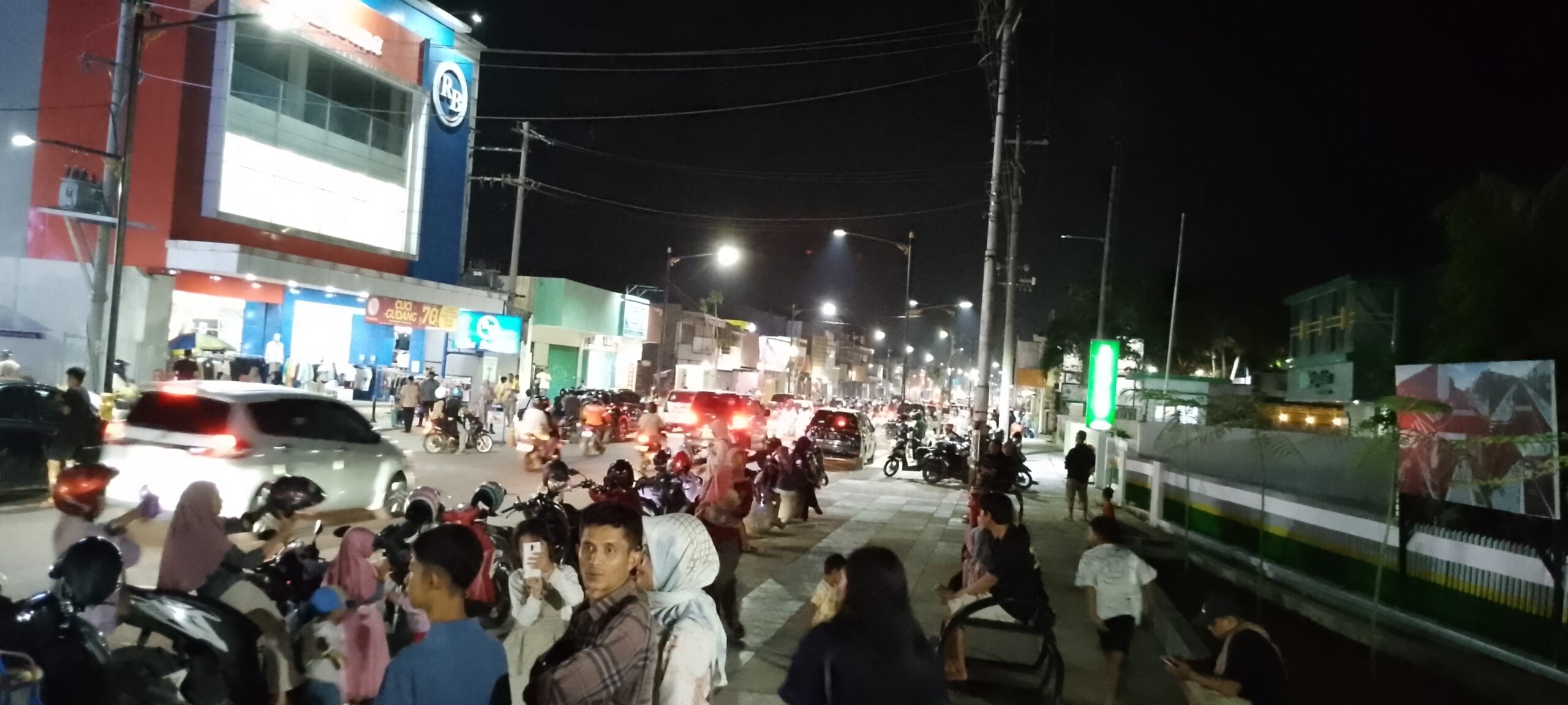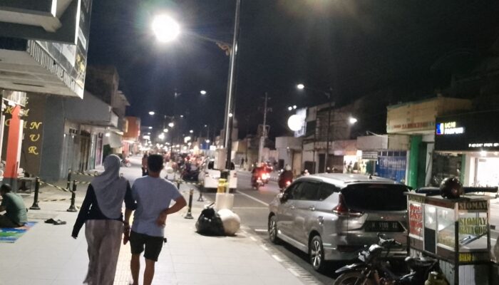 PEMALANG, KABARMETRO.CO- Konsep tata ruang kota yang mengutamakan pejalan kaki, menciptakan area yang hidup, nyaman, dan multifungsi di jantung kota. Seperti yang berada dijalan Jendral Sudirman Kabupaten Pemalang Jawa Tengah, Sabtu Malam (13/12/25).