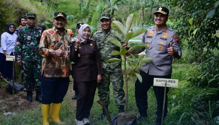 “Disini kita memetakan dengan Forkopimda daerah-daerah mana yang perlu penanaman pohon kembali dan hari ini kita laksanakan,” kata Kapolres.