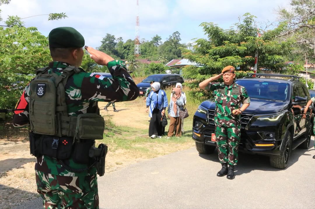 Entikong, Kalbar — Komandan Pusat Kesenjataan Arhanud Mayjen TNI R. Edi Setiawan beserta Ibu Cut Siti Hasyimah melaksanakan Dalwasev Satgas Ops DN ke Satgas Pamtas RI–Malaysia Yonarhanud 1/PBC/1 Kostrad. Rabu (05/11/2025).