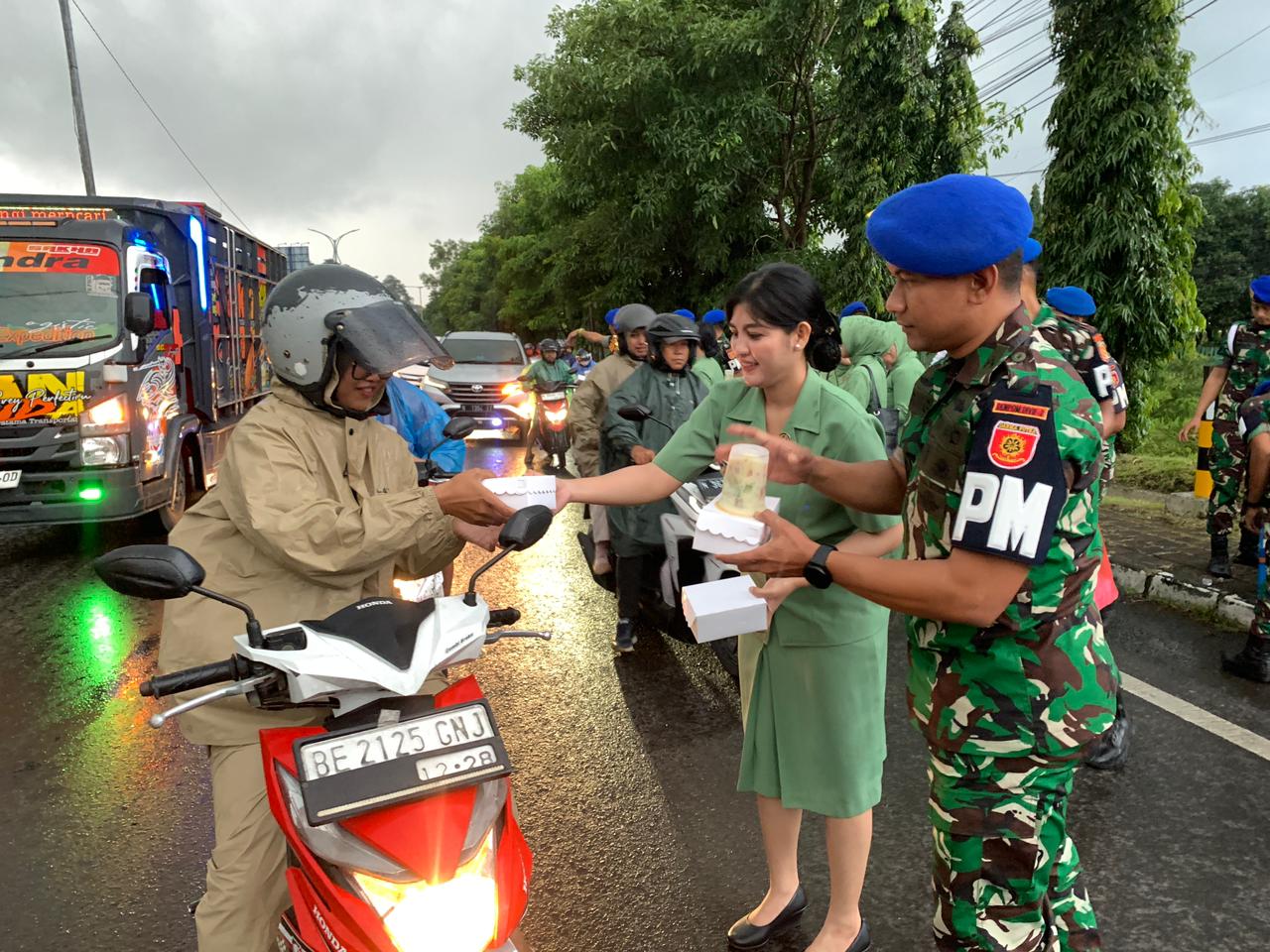 Kegiatan diawali dengan pembagian takjil kepada para pengguna jalan di depan Markas Denpom Divif 2 Kostrad yang diikuti prajurit bersama anggota Persit sebagai wujud kepedulian dan semangat berbagi kepada masyarakat yang menjalankan ibadah puasa.