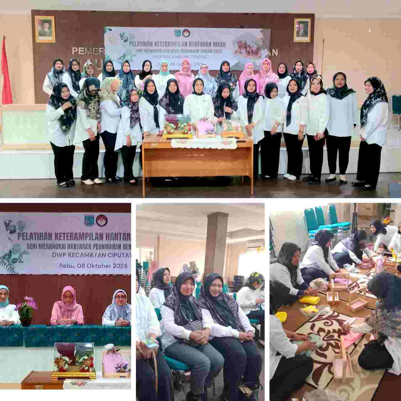 Dharma Wanita Persatuan (DWP) Kota Tangerang Selatan (Tangsel) menggelar pelatihan mahar atau souvenir nikah yang diselenggarakan di Aula Kecamatan Ciputat, Pada Rabu 08/10/2025. Turut Hadir saat acara Ketua DWP Kota Tangsel yang di wakili Santi Cahyadi , Kabid Pemberdayaan Perempuan DP3A2KB Drg. Mercy Aprianti, Bu Camat Ciputat Masnawati,Para Istri Lurah, Kasie Se- Kecamatan Ciputat.