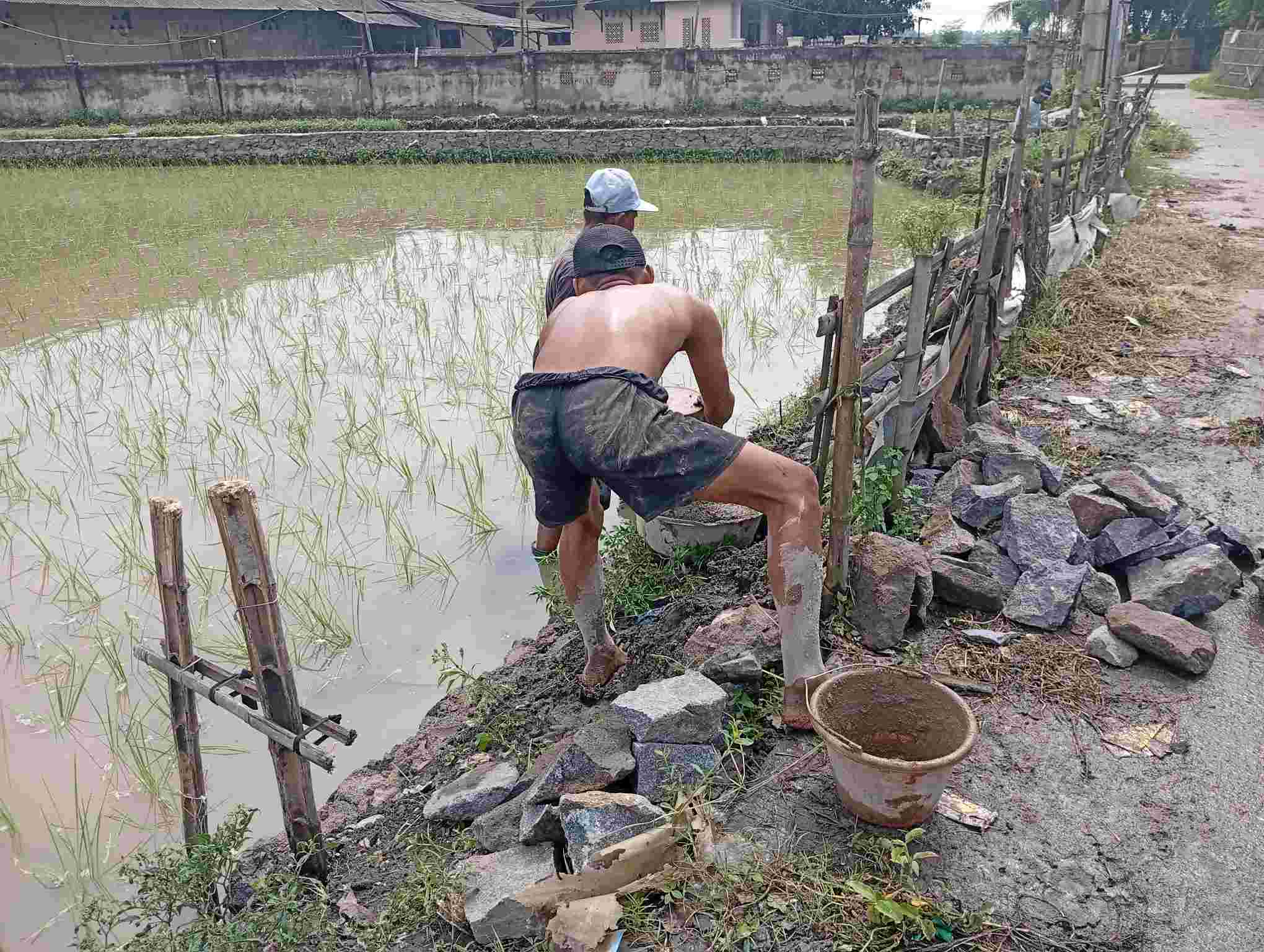 Jelas nampak di lokasi kegiatan tidak adanya pemasangan Papan Informasi Publik (PIP) yang menghalangi masyarakat untuk mengetahui proyek apa dan besaran nilai serta anggaran darimana serta para pekerja yang tidak memakai Alat Pelindung Diri ( APD) dan diduga cara pemasangan batu yang asal jadi