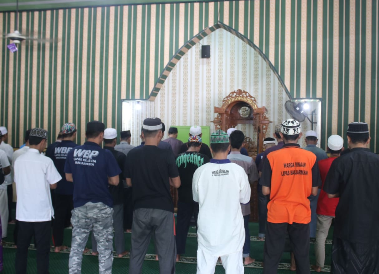 Suasana pagi di Lapas Kelas IIA Banjarmasin pada Rabu (15/10) diwarnai dengan lantunan doa dan zikir dari kegiatan Salat Dhuha berjamaah yang rutin dilaksanakan setiap harinya di Masjid Baabut Taqwa. Kegiatan ini menjadi bagian dari program pembinaan kepribadian yang secara konsisten digalakkan oleh pihak Lapas sebagai sarana membentuk karakter spiritual warga binaan.