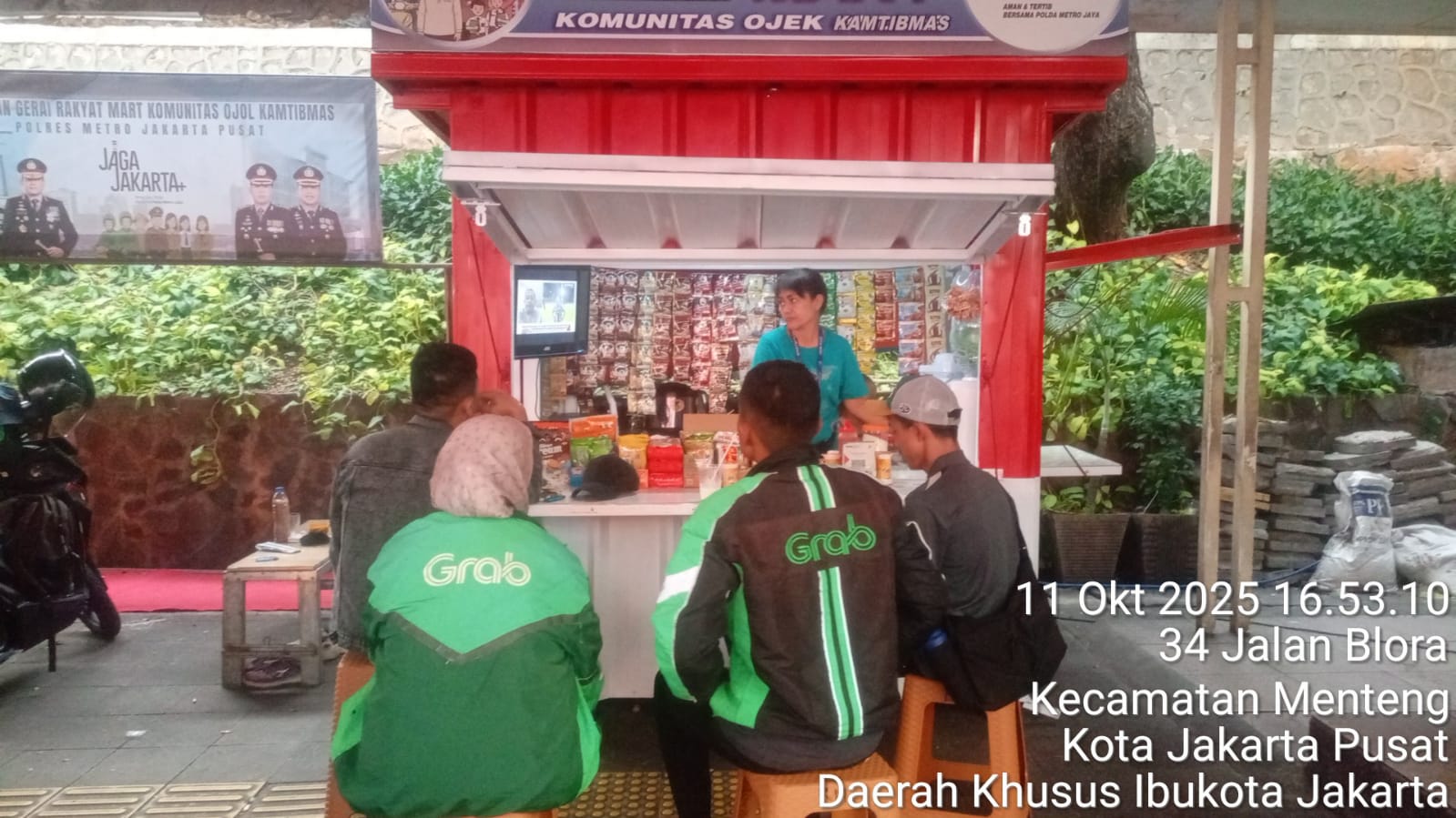 Jakarta Pusat – Polsek Metro Menteng melalui personel Bhabinkamtibmas melaksanakan kegiatan sambang ke Gerai Rakyat Mart Komunitas Ojol Kamtibmas Blora di Jalan Blora, RW 06, Kelurahan Menteng, Jakarta Pusat, Sabtu (11/10/2025) sore.
