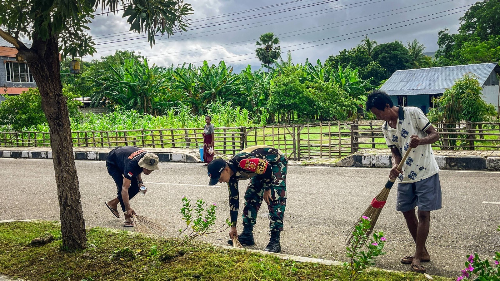 Wini – Menindaklanjuti arahan Presiden Republik Indonesia, Prabowo Subianto, untuk senantiasa menggalakkan budaya “kurve” secara konsisten, Satgas Pamtas RI–RDTL Sektor Barat Yonarhanud 2 Kostrad Pos Wini menggelar kegiatan Karya Bakti serentak di sepanjang jalan raya utama Desa Wini, Kecamatan Insana Utara, Kabupaten Timor Tengah Utara (TTU), Rabu (18/02/26).