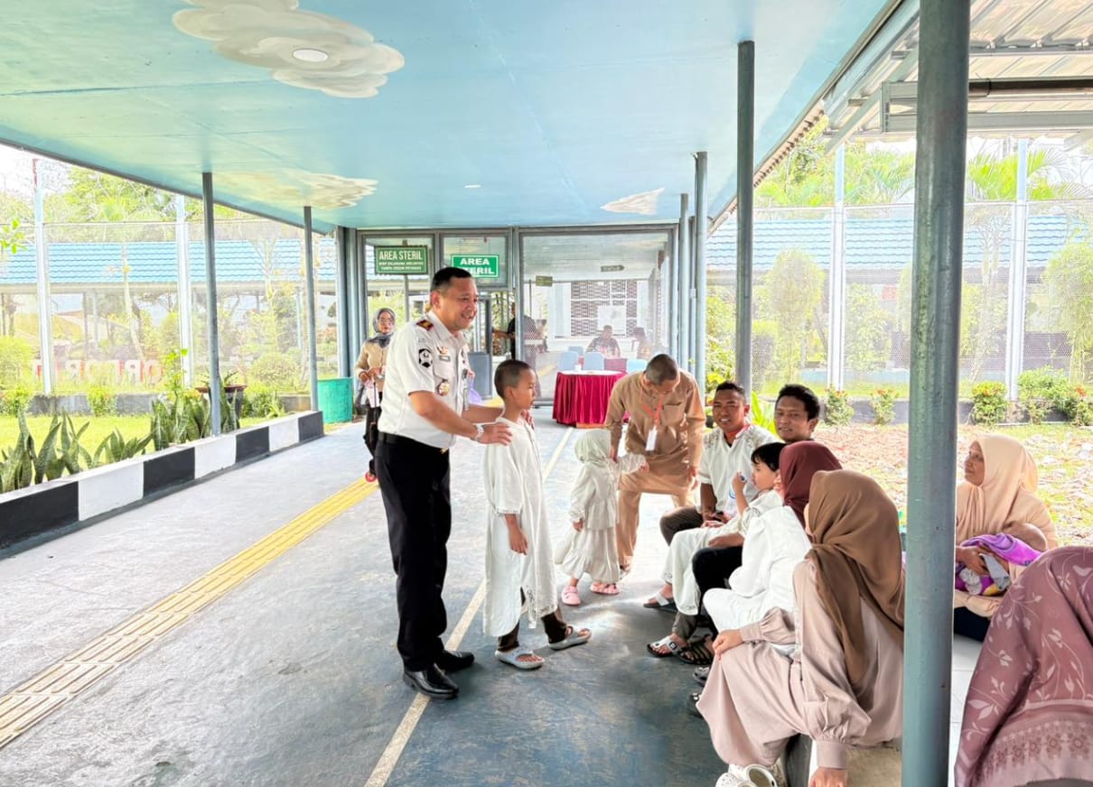 Suasana haru dan penuh kehangatan mewarnai pelaksanaan kunjungan Hari Raya Idulfitri di Lapas Narkotika Kelas IIA Karang Intan, Sabtu (21/03/2026). Momen yang selalu dinanti ini terasa semakin istimewa dengan kehadiran langsung Kepala Lapas, Yugo Indra Wicaksi, yang menyapa warga binaan beserta keluarga mereka.