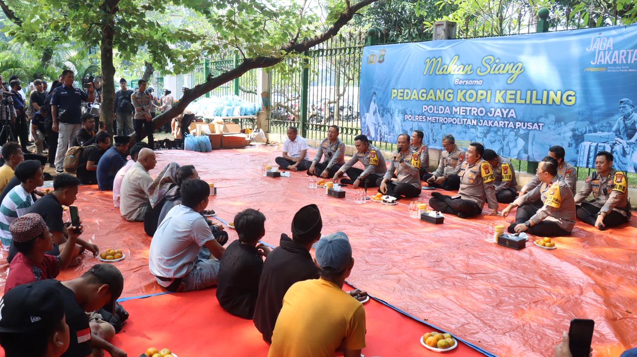 Jakarta Pusat – Kapolda Metro Jaya Irjen Pol. Asep Edi Suheri menggelar kegiatan makan siang bersama pedagang kopi keliling di Taman Silang Monas Selatan, Gambir, Jakarta Pusat, Kamis (9/10/2025) siang. Kegiatan ini merupakan upaya sinergi antara kepolisian dan masyarakat dalam menjaga keamanan dan ketertiban di ibu kota.