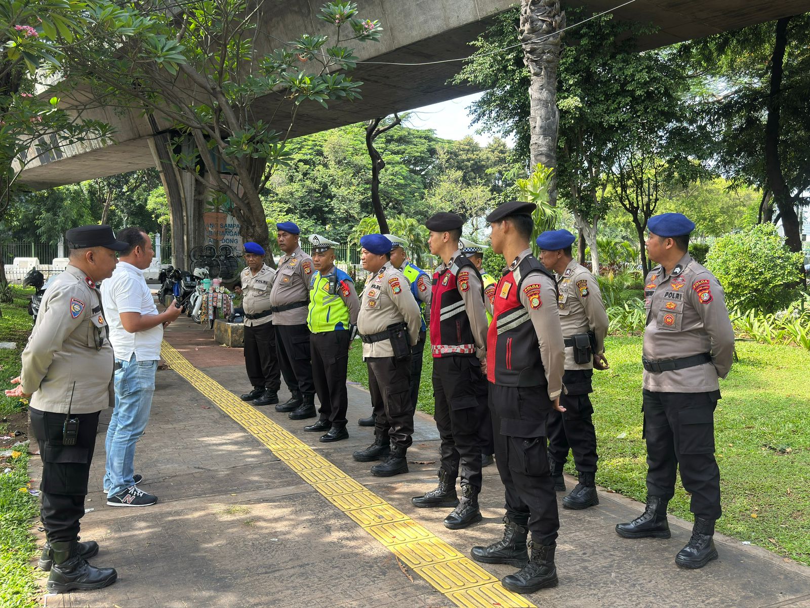 Jakarta Pusat — Untuk memastikan kegiatan unjuk rasa berjalan aman dan tertib, Polri menggelar apel pelayanan dan pengamanan unjuk rasa di wilayah Gambir, Jakarta Pusat, Senin (29/12/2025) pukul 09.00 WIB. Apel ini bertujuan mengecek kesiapan personel serta menyamakan cara bertindak sesuai SOP pengamanan massa, dipimpin langsung oleh Kapolsek Sawah Besar Kompol Rahmat Himawan, S.Sos., M.H., dengan penekanan pengamanan dialogis dan humanis hindari kekerasan, seluruh peraonil di larang membawa senjata api maupun senjata tajam.
