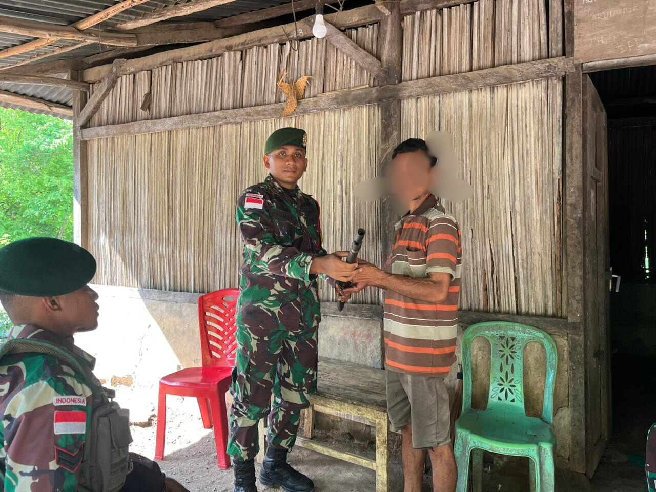Manamas – Wujud kepercayaan masyarakat perbatasan kepada Satgas Pamtas RI-RDTL Sektor Barat Yonarhanud 2 Kostrad kembali ditampakkan dengan adanya penyerahan 1 pucuk senjata api oleh salah satu warga perbatasan di Desa Manamas, Kec. Naibenu, Kab. TTU. Minggu (30/11).