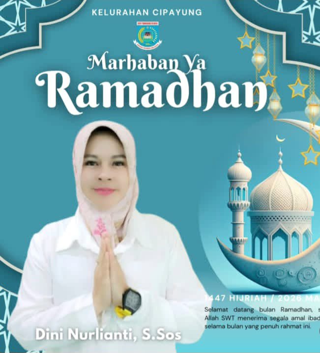 Menyambut datangnya bulan suci Ramadhan 1447 Hijriah/2026 Masehi, Kelurahan Cipayung, Kecamatan Ciputat, menyampaikan ucapan selamat menunaikan ibadah puasa kepada seluruh umat Muslim, khususnya warga Cipayung.