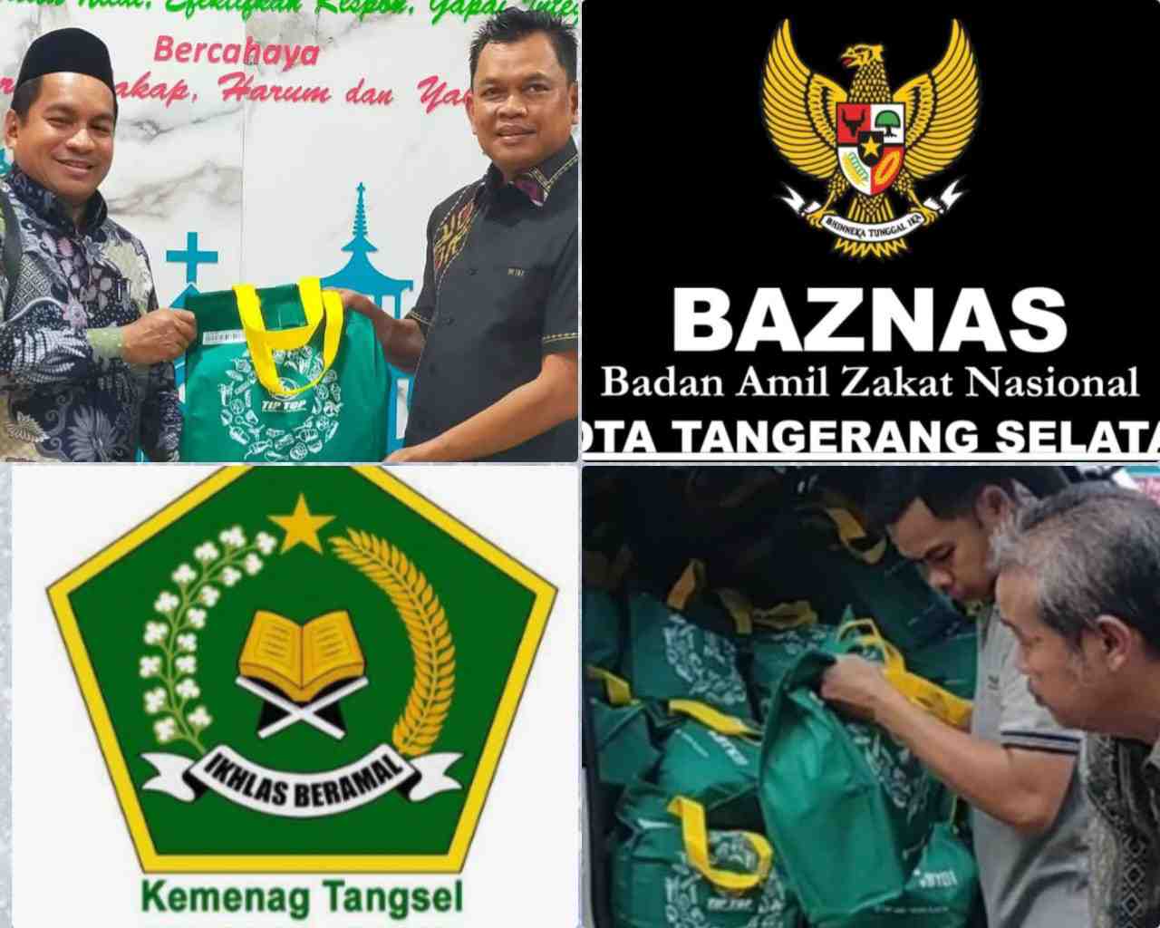 Badan Amil Zakat Nasional (Baznas) Kota Tangerang Selatan menyalurkan bantuan sosial berupa paket sembako dan uang tunai kepada Kantor Kementerian Agama (Kemenag) Kota Tangerang Selatan. Bantuan tersebut diterima langsung oleh Kepala Kantor Kemenag Tangsel, Ahmad Rifaudin, pada Kamis (8/1/2026).