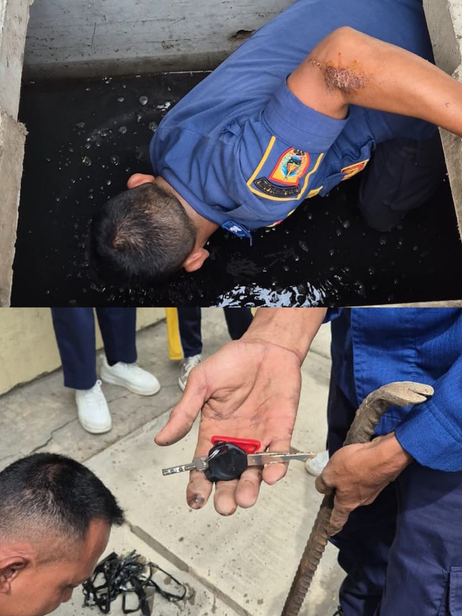 Alhasil, dalam waktu kurang lebih 7 menit, petugas Damkar berhasil membuka penutup saluran dan mengambil kunci motor tersebut.