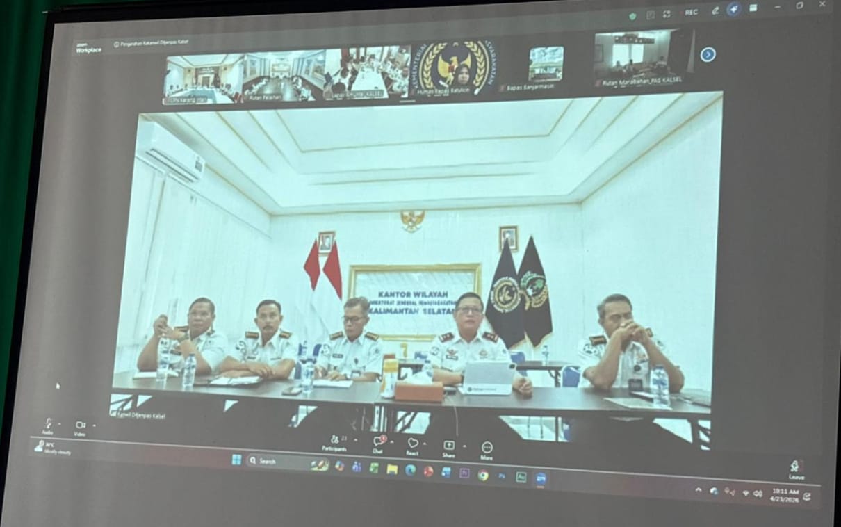 Lembaga Pemasyarakatan (Lapas) Narkotika Kelas IIA Karang Intan mengikuti kegiatan pengarahan bagi Kepala Unit Pelaksana Teknis (UPT) di lingkungan Kantor Wilayah Direktorat Jenderal Pemasyarakatan Kalimantan Selatan secara virtual, Kamis (23/4/2026). Kepala Lapas Karang Intan, Yugo Indra Wicaksi, bersama jajaran pejabat struktural mengikuti kegiatan yang dilaksanakan melalui Zoom Meeting tersebut.