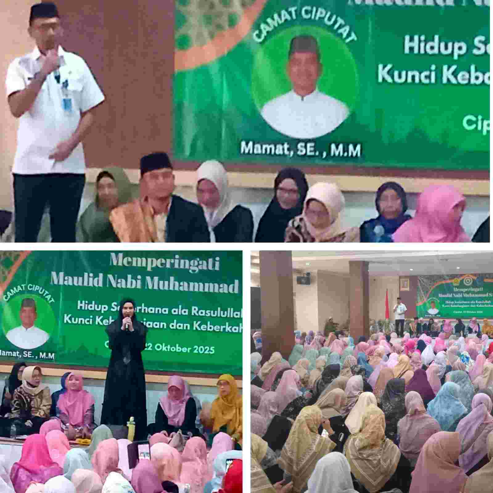 Bertajuk” Hidup Sederhana ala Rasulullah SAW, Kunci Kebahagiaan dan Keberkahan” Majlis Taklim Al- Hidayah Kecamatan Ciputat Kota Tangerang-Selatan Memadati Aula Kantor Kecamatan, dalam rangka memperingati Maulid Nabi Muhammad SAW 1447.H./2025 M. Acara berlangsung Ramai namun tetap Khidmat yang dihadiri oleh Sekcam Ciputat Indra Gunawan S. Sos.M.A mewakili Camat, Ketua DWP Kota Tangsel Monalisa Indrawati Bambang, Ketua Majlis Taklim Kotq Tangsel Hj Fatiyah, Ketua Majlis Taklim Kecamatan Ciputat Hj.Istoqomah , Ibu- ibu Majlis Taklim RT dan RW. Se- Kecamatan.Pada Rabu22/10/2025.