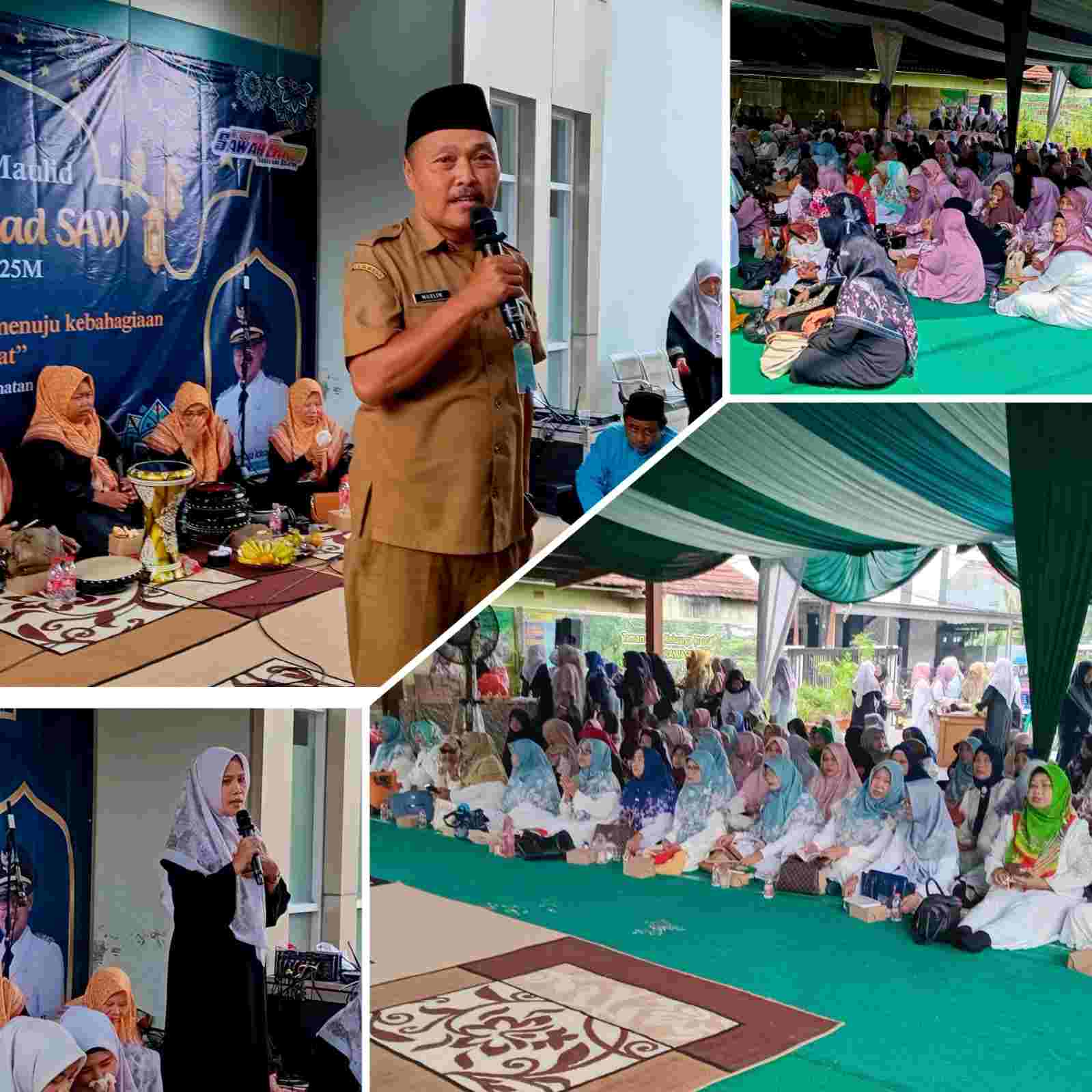 Bertajuk ” Cinta Rasullullah Sebagai Jalan Menuju Dunia dan Akherat” Majlis Taklim Al- Hidayah Kelurahan Sawah Baru, Kecamatan Ciputat Kota Tangerang-Selatan Memenuhi Areal Kantor Kelurahan dalam rangka memperingati Maulid Nabi Muhammad SAW 1447.H. Acara berlangsung meriah namun tetap Khidmat dihadiri oleh Lurah Sawah Baru H.Muslim SE beserta jajaran, Ketua Majlis Taklim Kelurahan Siti Aminah, segenap Ibu- ibu Majlis Taklim RT dan RW.Pada Senin, 13/10/2025.