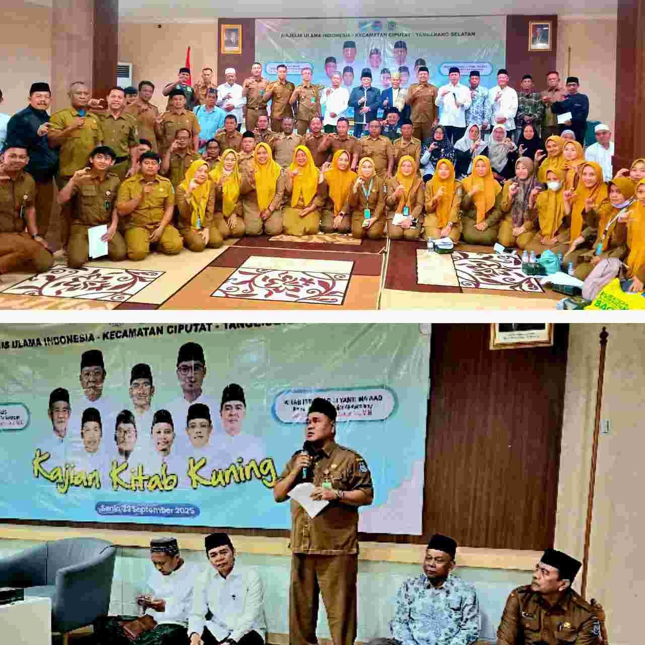 Acara kajian berlangsung di Aula Kecamatan Pada, Senin pagi (29/9/2025). Nampak hadir juga Ketua MUI Kota Tangsel KH.Saidih, Ketua LPTQ DR. KH Sobron Zayyan Sekertaris Umum MUI H.Abdul Rozak, Camat Ciputat H.Mamat beserta jajaran, dan lurah- lurah Se- Kecamatan Ciputat.
