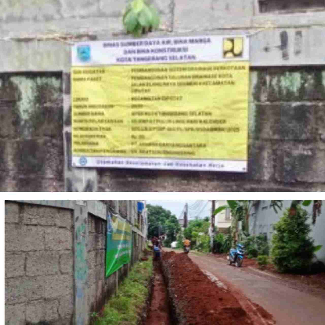 Tangerang Selatan – Papan informasi proyek pada salah satu kegiatan fisik milik Dinas Sumber Daya Air, Bina Marga, dan Bina Konstruksi (DSDABMBK) Kota Tangerang Selatan menuai sorotan publik. Pasalnya, papan proyek pembangunan sistem drainase perkotaan di Jalan Elang Raya, Kampung Sawah Lama, Ciputat, tidak mencantumkan nilai anggaran atau nominal kontrak, padahal proyek tersebut dibiayai melalui APBD.