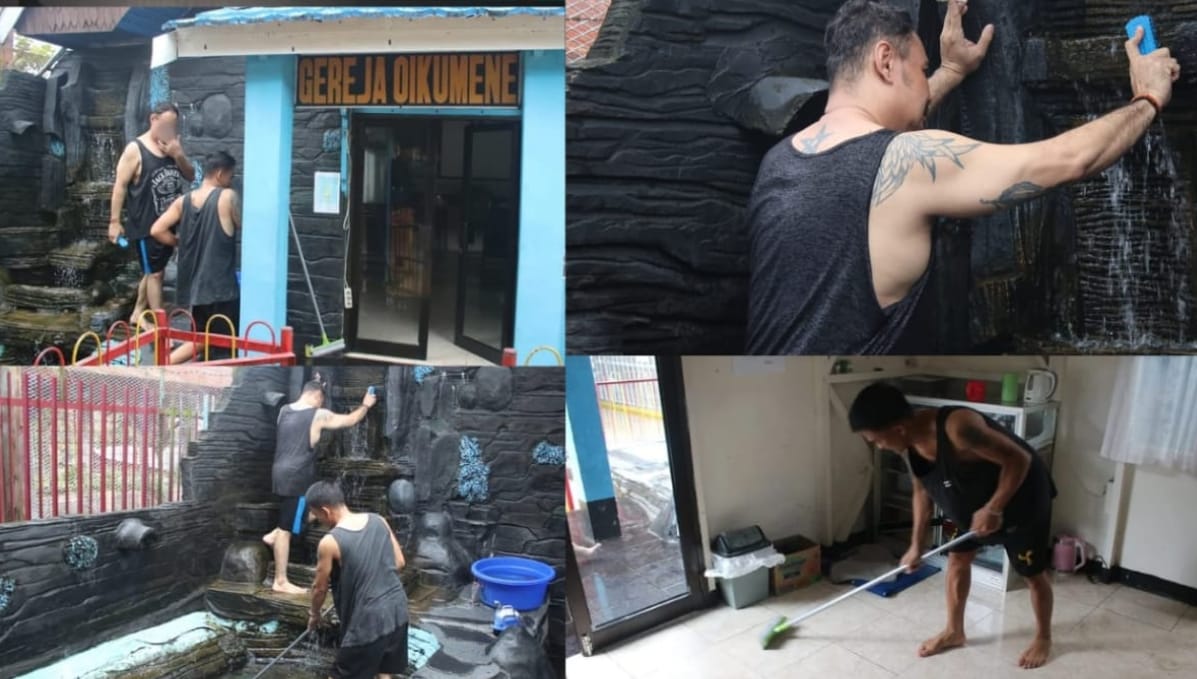 Minggu (16/11), Warga Binaan Pemasyarakatan (WBP) Lapas Kelas IIA Banjarmasin melakukan kegiatan rutin bersih-bersih di Gereja Oikumene. Aktivitas ini menjadi bagian dari pembinaan spiritual dan menjaga kebersihan tempat ibadah di lingkungan Lapas.