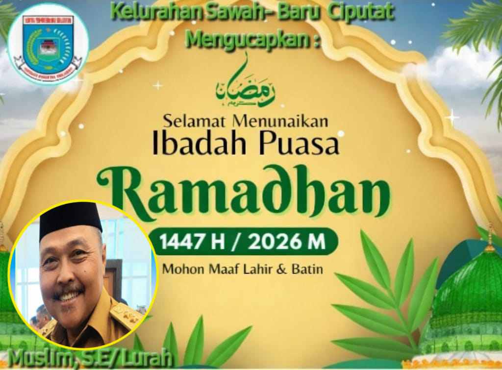 Pemerintah Kelurahan Sawah-Baru, Kecamatan Ciputat, menyampaikan ucapan selamat menunaikan ibadah puasa Ramadhan 1447 Hijriah kepada seluruh masyarakat. Ucapan tersebut disampaikan sebagai bentuk dukungan dan ajakan untuk menyambut bulan suci dengan penuh keimanan dan semangat kebersamaan.