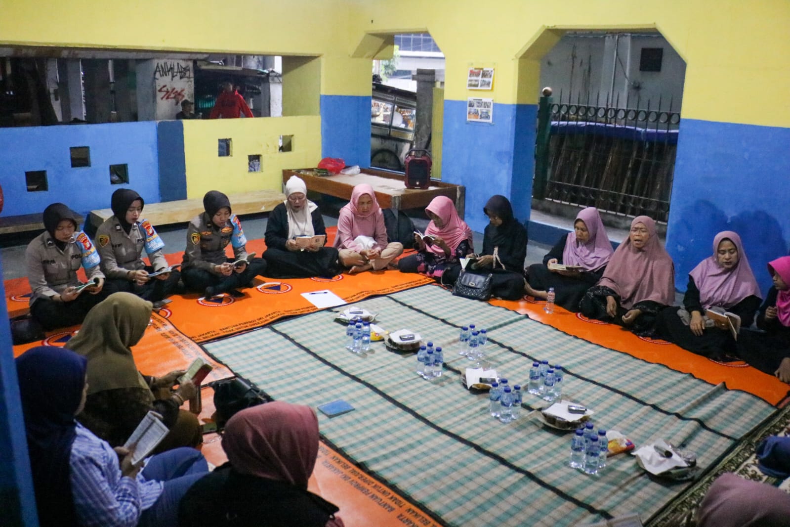 Kegiatan yang berlangsung hangat dan penuh kekeluargaan tersebut diawali dengan pengajian rutin majelis taklim. Dalam suasana yang teduh, para jamaah dan aparat kepolisian saling bertukar pandangan mengenai pentingnya memperkuat karakter keagamaan dan solidaritas sosial di tengah dinamika kehidupan perkotaan.