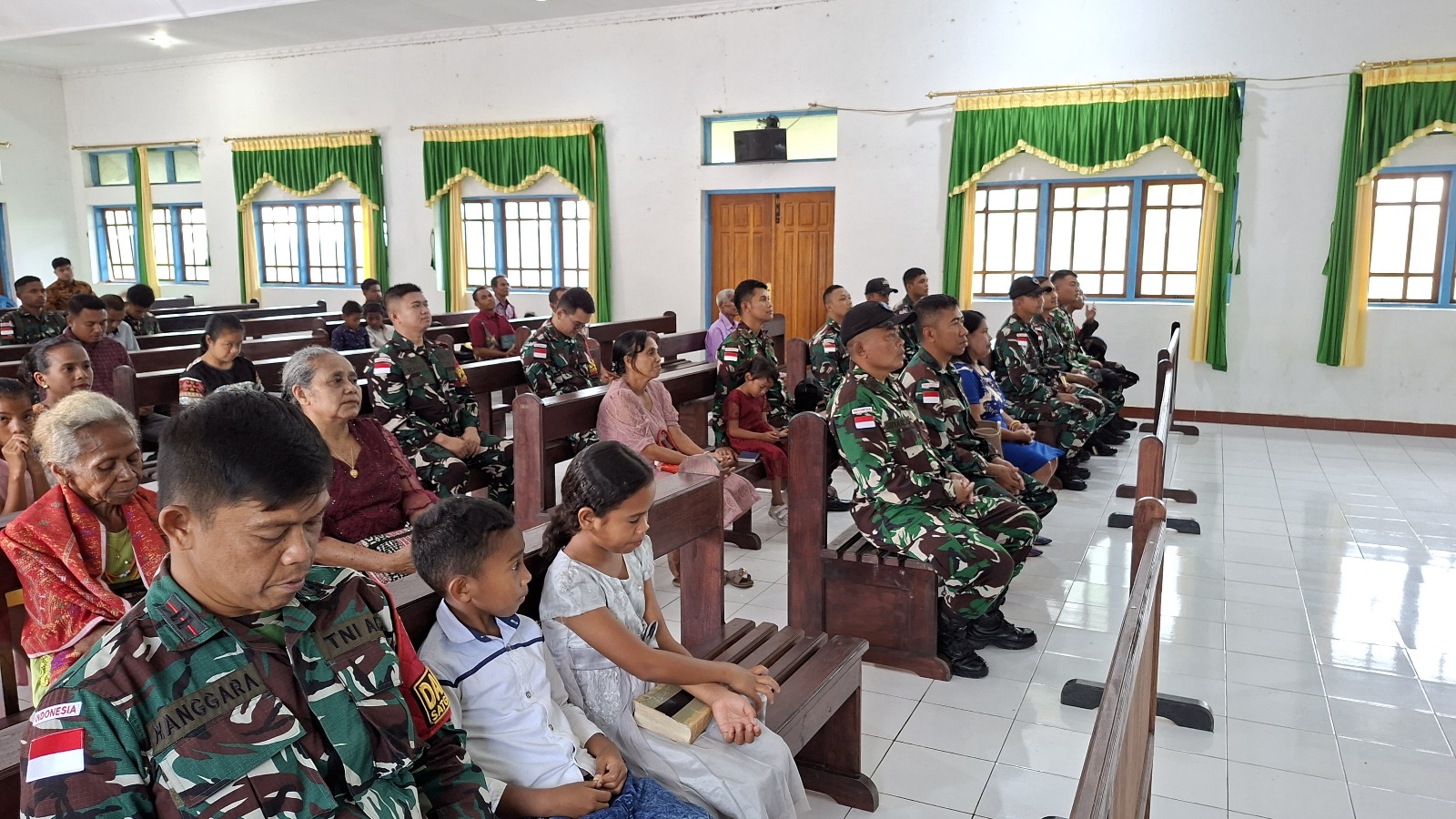 Kegiatan ini dilaksanakan dalam rangkaian ibadah hari Minggu di Gereja GMIT PNIEL Eban. Kunjungan ini merupakan bagian dari upaya Satgas Pamtas untuk membangun dan mempererat komunikasi serta tali persaudaraan antara TNI dan seluruh komponen masyarakat di wilayah perbatasan.