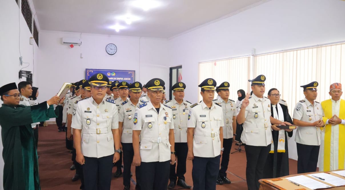 Kepala Lembaga Pemasyarakatan (Lapas) Narkotika Kelas IIA Karang Intan, Yugo Indra Wicaksi, menghadiri kegiatan pelantikan dan pengambilan sumpah Pejabat Manajerial Eselon V di lingkungan Kantor Wilayah Direktorat Jenderal Pemasyarakatan (Ditjenpas) Kalimantan Selatan yang dipimpin langsung oleh Kepala Kantor Wilayah Ditjenpas Kalimantan Selatan, Mulyadi, Rabu (21/1).