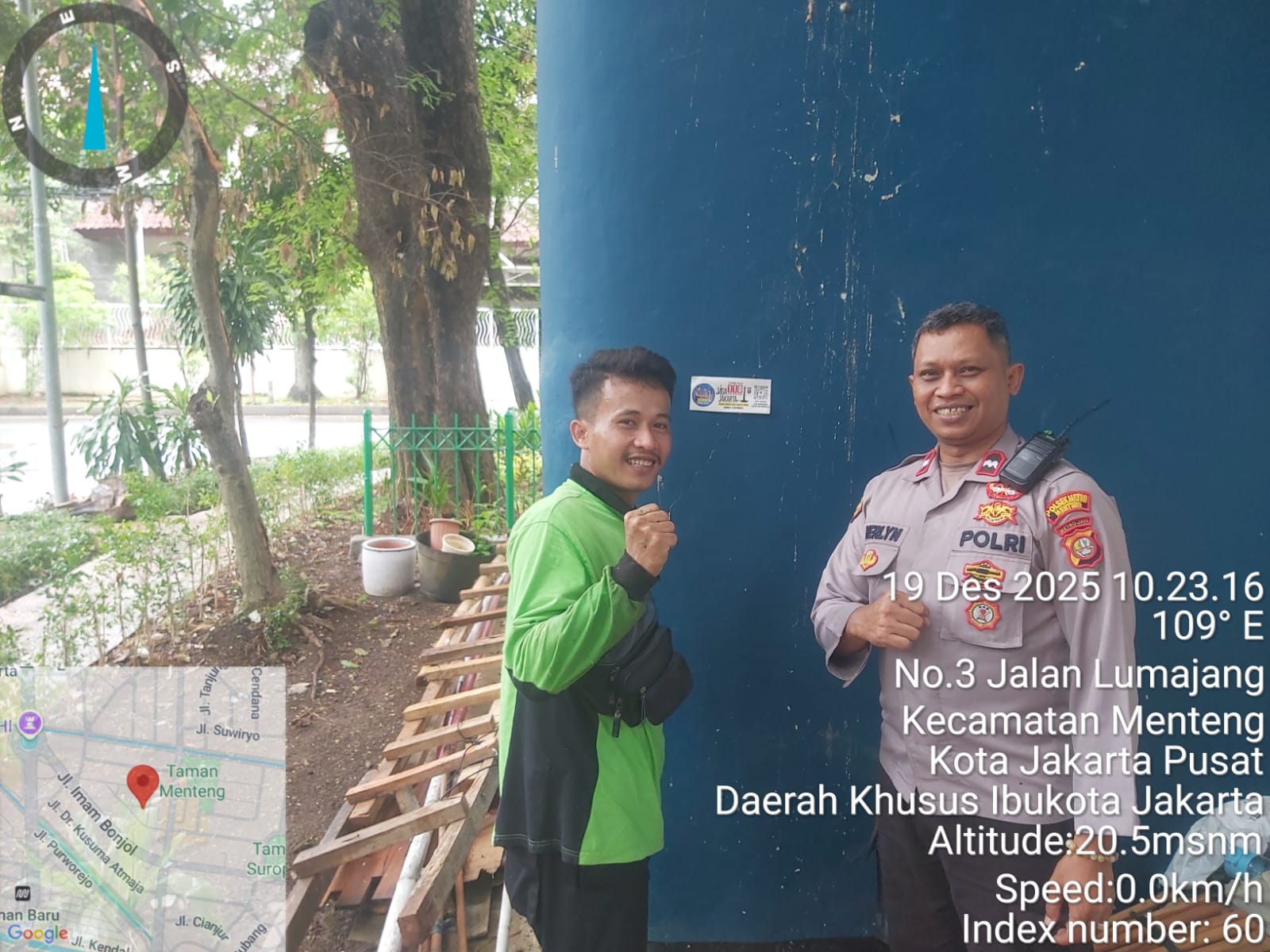 Jakarta Pusat – Dalam upaya meningkatkan pelayanan kepolisian yang cepat dan responsif kepada masyarakat, anggota Samapta Polsek Metro Menteng bersama Aipda M. Herlin melaksanakan kegiatan sosialisasi Barcode Sahabat Patroli Polisi dengan menempelkan stiker barcode di sepanjang Jalan Lumajang, Kecamatan Menteng, Jakarta Pusat. Jumat (19/12/2025)