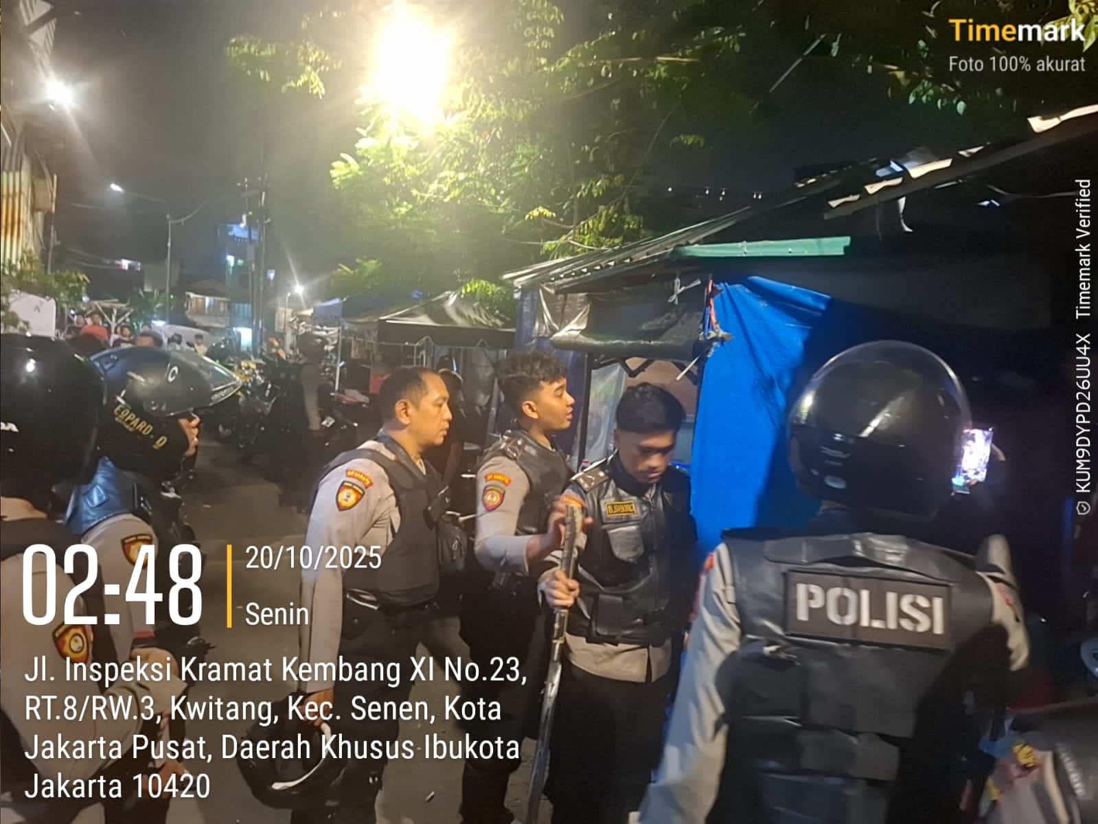 Jakarta Pusat — Tim Patroli Perintis Presisi Sat Samapta Polres Metro Jakarta Pusat menggagalkan aksi tawuran brutal yang terjadi di Jl. Inspeksi Kramat Kembang XI, Jakarta Pusat, pada Senin (20/10/2025) sekitar pukul 02.30 WIB.