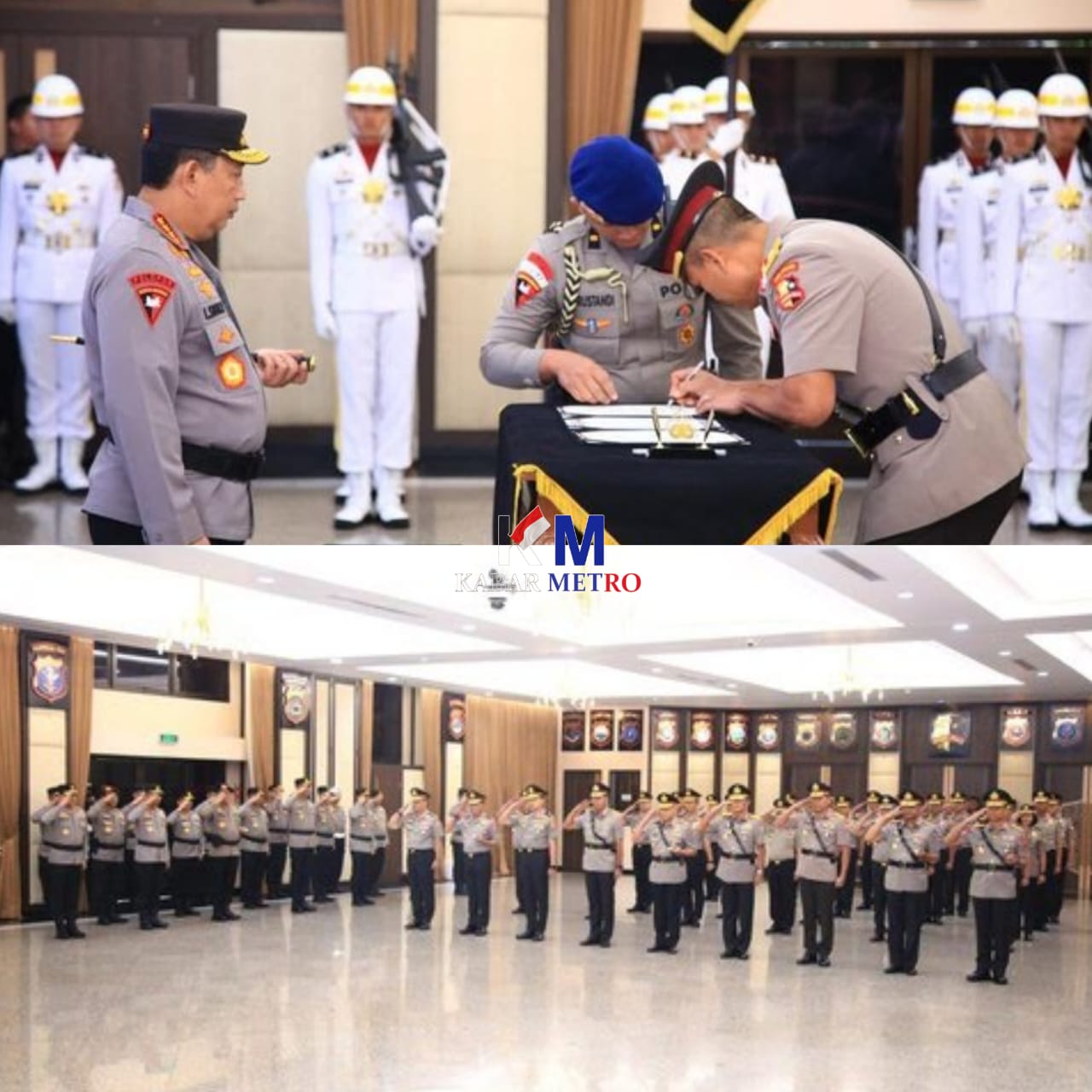 Kepolisian Negara Republik Indonesia (Polri) menggelar upacara khidmat untuk meresmikan kenaikan pangkat 26 perwira tinggi (pati) di Mabes Polri, Jakarta, Jumat (29/11). Dalam upacara tersebut, dua perwira resmi menyandang pangkat komisaris jenderal (Komjen) atau bintang tiga, yakni Dedi Prasetyo sebagai Inspektur Pengawasan Umum (Irwasum) Polri dan Chryshnanda Dwilaksana sebagai Kepala Lembaga Pendidikan dan Pelatihan (Kalemdiklat) Polri.