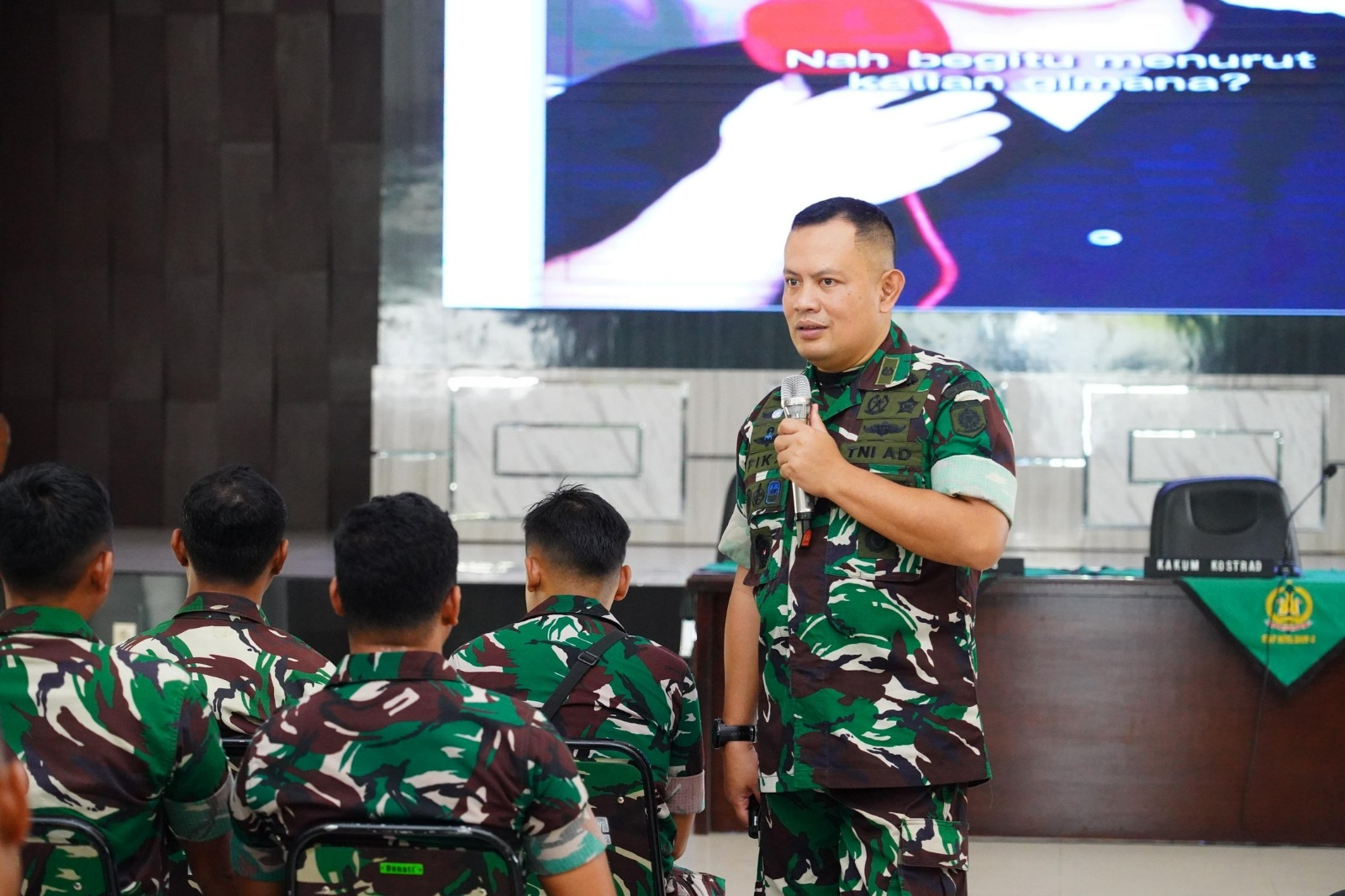Kepala Hukum Kostrad, Kolonel Chk Fika Budhiana, M.J.P., menyampaikan materi dengan pendekatan yang komunikatif dan relevan. Ia menyoroti isu-isu aktual seperti penanganan perkara pidana dan disiplin, bahaya judi online, pinjaman daring, serta etika bermedia sosial. “Hukum bukan untuk menakut-nakuti, tapi untuk melindungi. Kesadaran hukum adalah benteng pertama dalam menjaga kehormatan prajurit,” tegasnya.