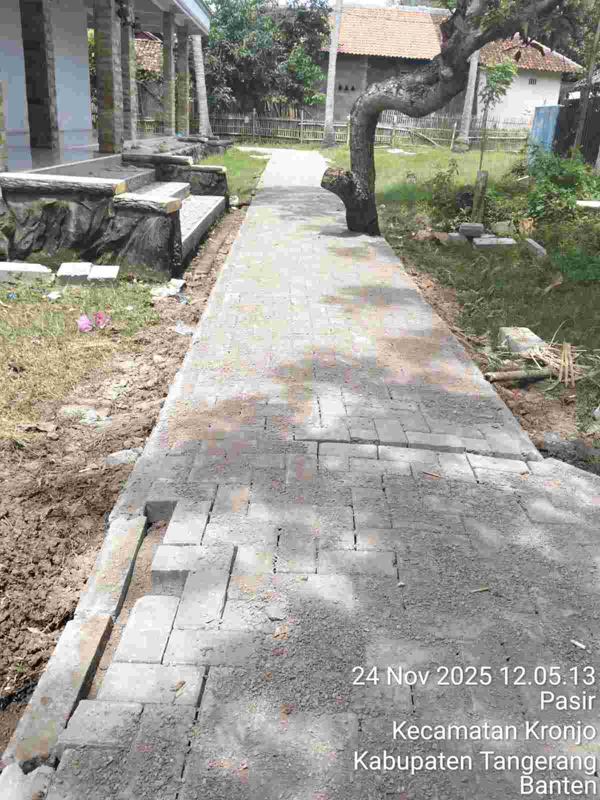 Proyek Paving Block Kp Pasir tengah Desa Pasir Kec Kronjo Diduga Asal Jadi Pohon di Biarkan Berdiri di Tengah Jalan