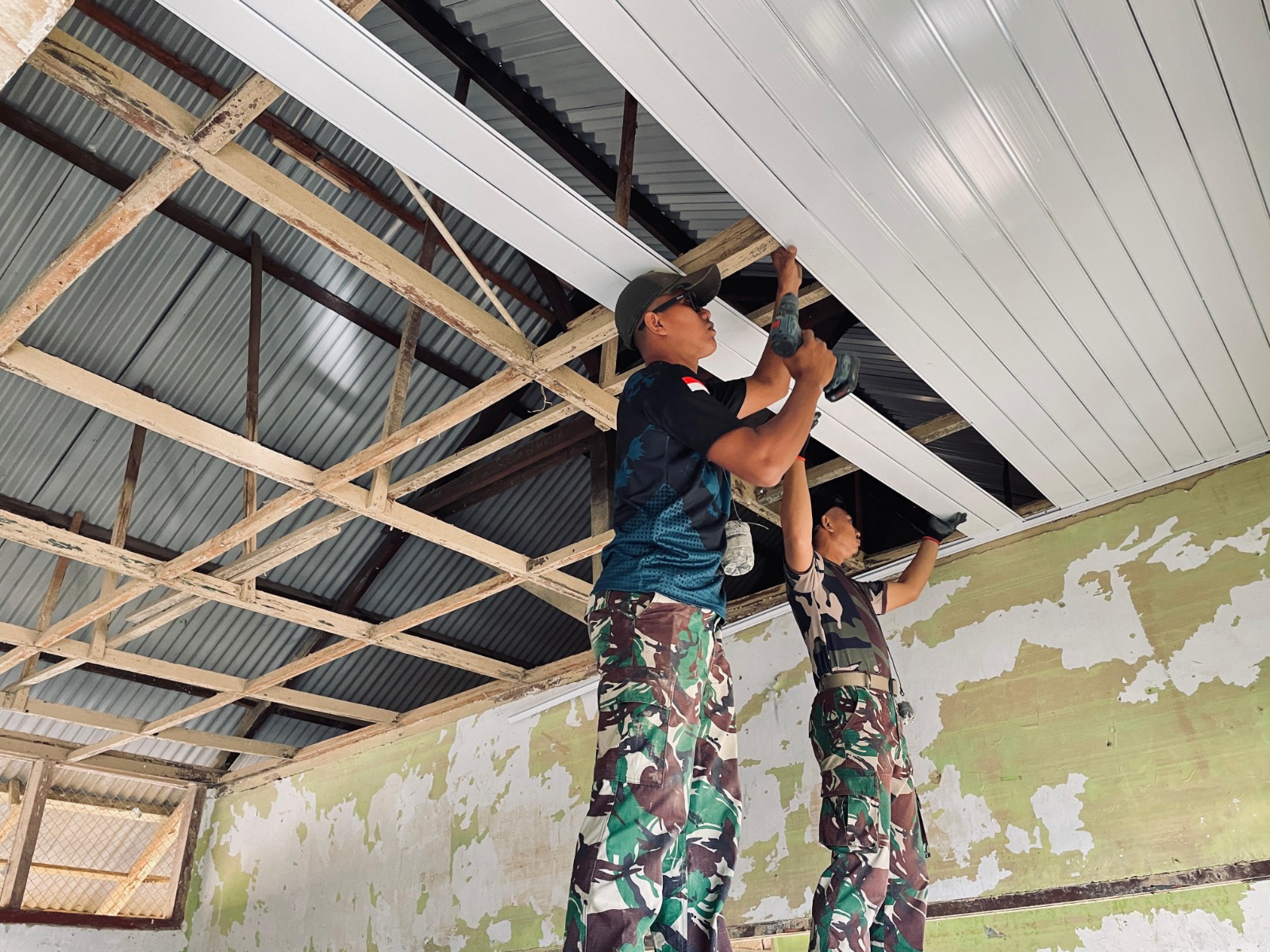 Personel Satgas fokus melakukan perbaikan pada kerusakan atap, pengecatan dinding kelas, serta penggantian lantai yang sudah tidak layak. Pengerjaan ini dilakukan secara intensif untuk memastikan ruang kelas kembali kokoh dan aman digunakan oleh para siswa dalam waktu dekat.
