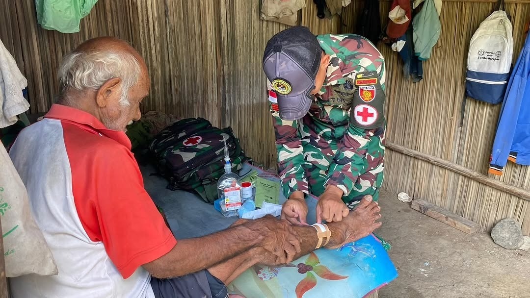 Malaka, NTT – Wujud kepedulian terhadap kesehatan masyarakat di wilayah perbatasan kembali ditunjukkan oleh Satgas Pamtas RI–RDTL Sektor Timur Yonarmed 12 Kostrad melalui Pos Asulait dengan melaksanakan pelayanan kesehatan kepada warga desa binaan yang mengalami luka pada bagian kaki saat berkebun. Kegiatan ini merupakan bentuk respon cepat personel Satgas dalam membantu masyarakat yang membutuhkan pertolongan medis. Kamis (12/3/2026).