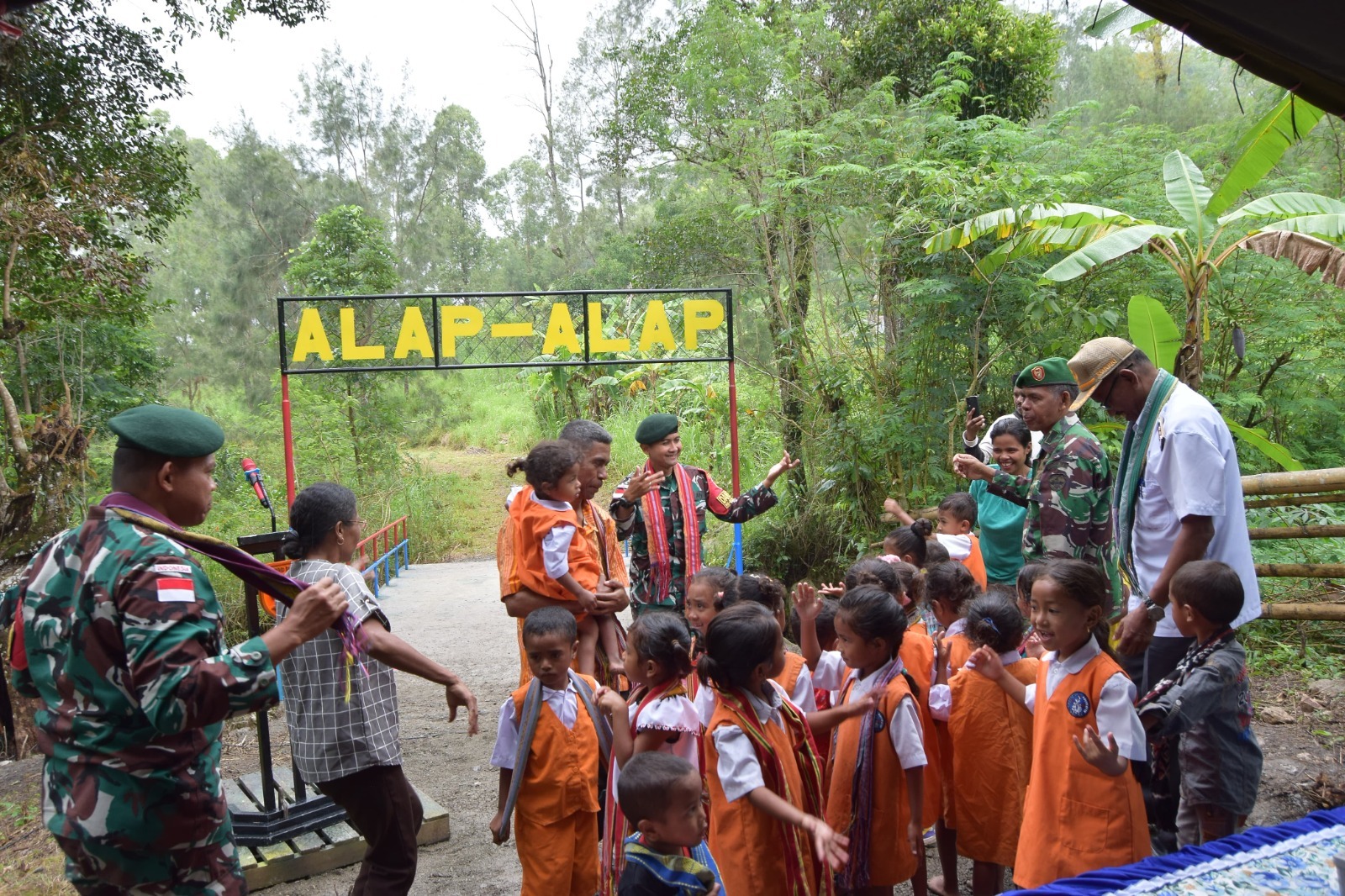 Saenam – Satgas Pamtas RI–RDTL Sektor Barat Yonarhanud 2 Kostrad meresmikan Jembatan Alap-Alap yang menghubungkan Desa Saenam dan Desa Fatuneno, Kecamatan Miomaffo Barat, Kabupaten Timor Tengah Utara (TTU), Rabu (11/02/26).