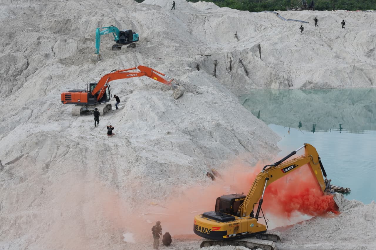 Di hadapan awak media, Menteri Pertahanan Sjafrie Sjamsoeddin menyampaikan bahwa operasi penertiban ini merupakan tindak lanjut dari terbitnya Peraturan Presiden Nomor 5 Tahun 2025. “Tim Penertiban Kawasan Hutan setelah mendapatkan Peraturan Presiden Nomor 5 Tahun 2025, terus melanjutkan kegiatan dan pada hari ini, kita menemukan kegiatan-kegiatan ilegal terhadap pelanggaran hukum yang akan kita tindaklanjuti,” kata Menhan di lokasi tambang ilegal.
