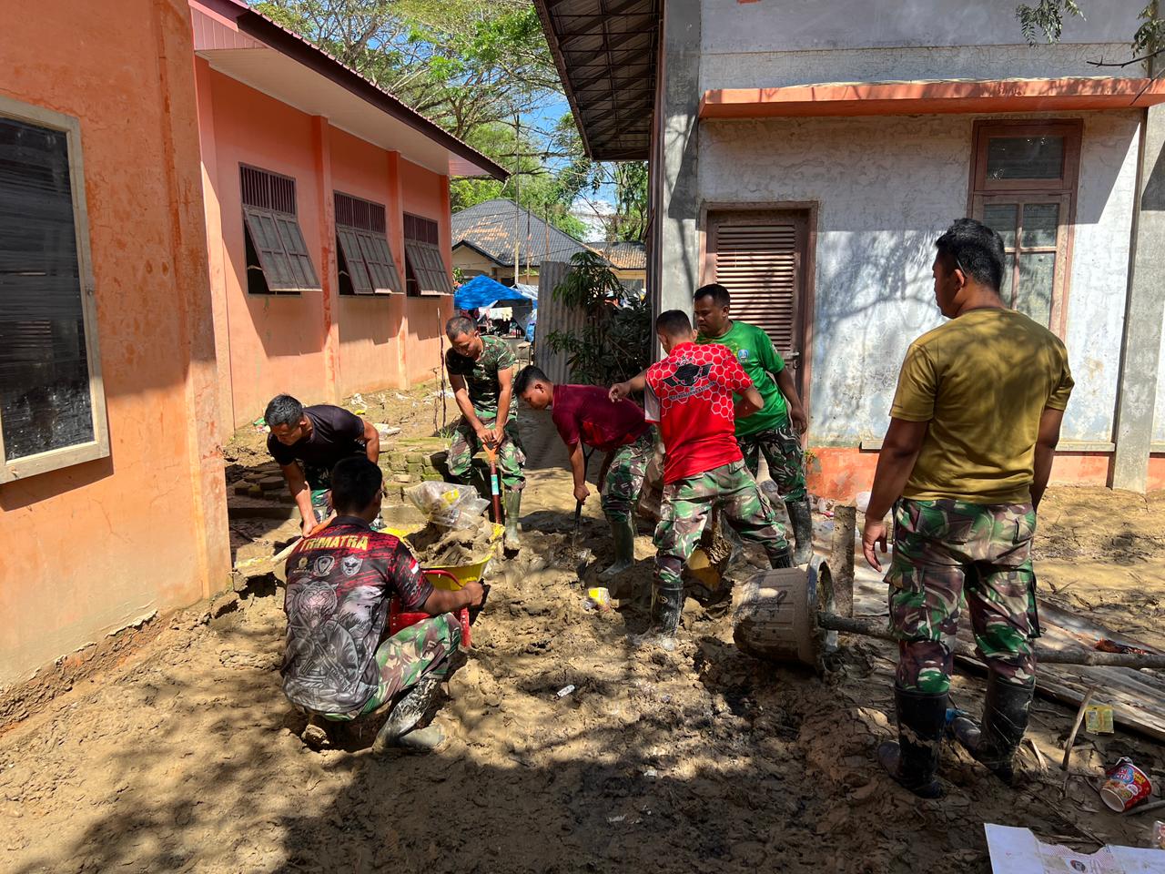 Kegiatan ini dilaksanakan sebagai upaya percepatan pemulihan fasilitas pendidikan yang terdampak bencana. Pembersihan difokuskan pada ruang kelas dan halaman sekolah yang tertutup lumpur tebal serta puing-puing sisa banjir, para prajurit bahu-membahu menyingkirkan material yang menghambat akses pendidikan agar kegiatan belajar mengajar dapat segera berjalan kembali. Kehadiran TNI di tengah masyarakat menjadi simbol komitmen dalam mempercepat pemulihan infrastruktur vital di wilayah terdampak.