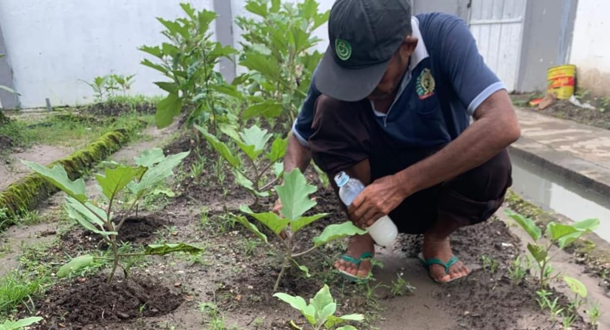 Warga Binaan Pemasyarakatan (WBP) Lapas Kelas IIA Banjarmasin terus menunjukkan semangat dalam mengikuti program pembinaan kemandirian melalui kegiatan pertanian. Rabu (12/11), para WBP tampak melakukan pemeliharaan tanaman terong dan kangkung di area lahan pertanian ketahanan pangan Lapas.