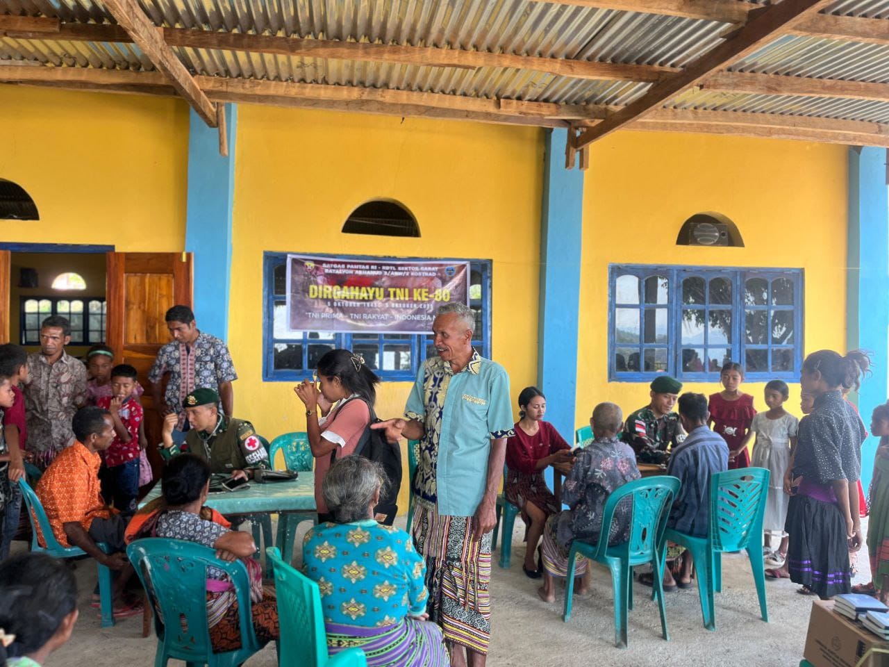 Kegiatan ini dipimpin langsung oleh Dan SSK 2, Lettu Arh Suradi, S.E. “Kegiatan ini kami laksanakan bertepatan dengan momen yang penting di mana pada hari ini, Minggu, 5 Oktober 2025 merupakan Hari Ulang Tahun TNI ke 80. Kami memberikan pelayanan kesehatan gratis di garis perbatasan RI-RDTL, serta memberikan buku Alkitab untuk Umat Gereja Kapel Haumeniana.” Ucapnya.