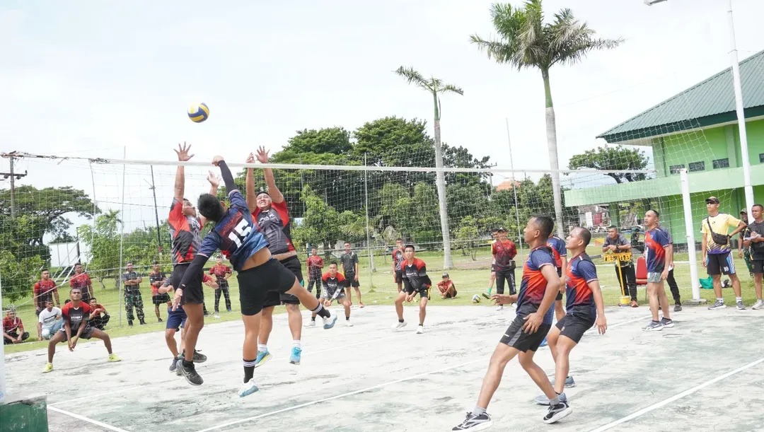 Lomba bola voli berlangsung meriah dan penuh antusiasme dengan menampilkan semangat sportivitas serta kerja sama antar peserta. Baik prajurit maupun Persit tampak berpartisipasi aktif, menjadikan kegiatan olahraga ini sebagai sarana rekreasi yang sehat sekaligus mempererat tali silaturahmi di lingkungan satuan.
